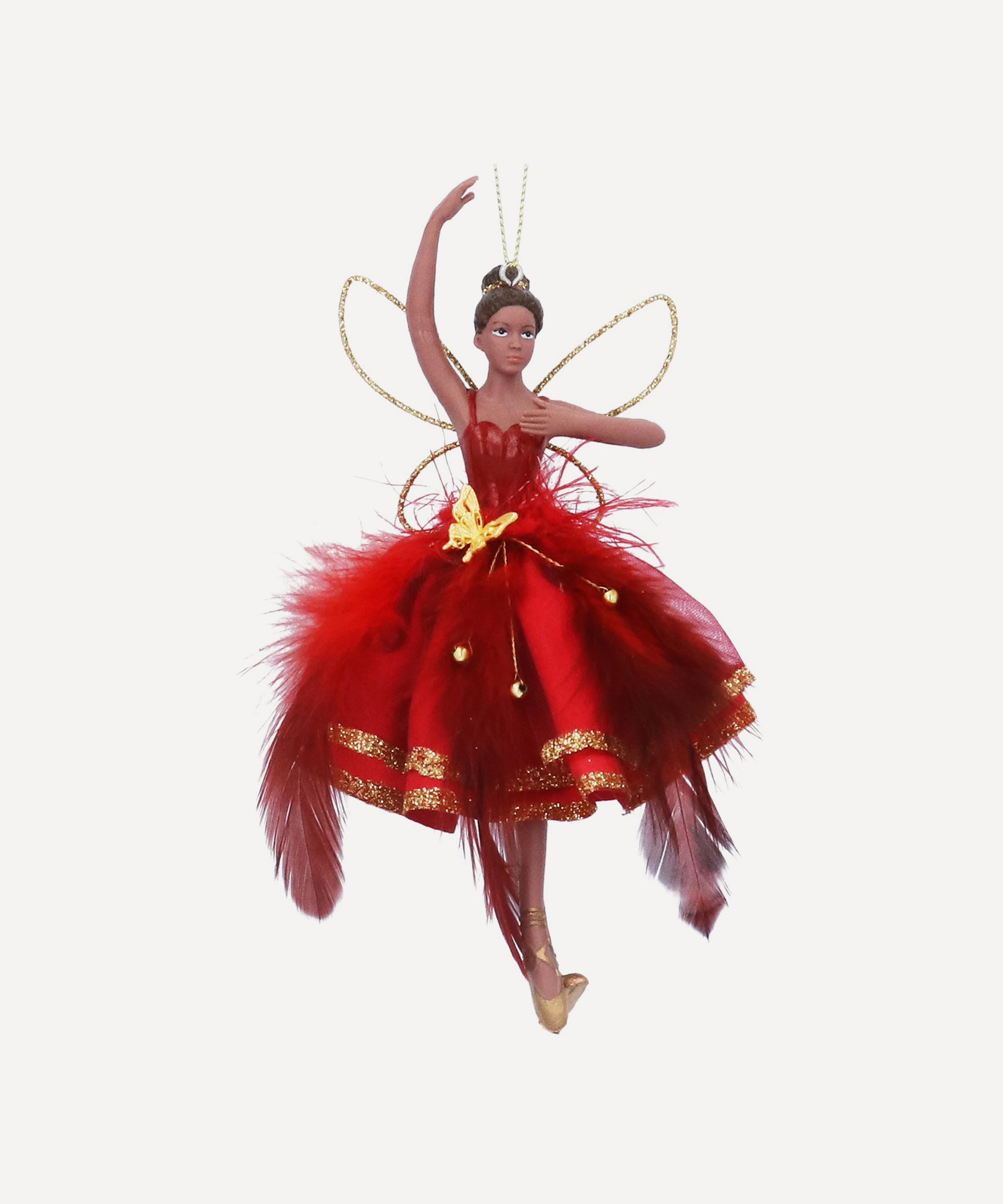 An alternative to traditional decorations, it’s exquisitely crafted from resin, featuring a charming fairy dressed in a red feathery skirt – a light-hearted, quirky option for those seeking to express a bit of their personality in this year’s festive décor. Bound to spark smiles and conversation, it makes for the perfect personalised gift or collectable – pair it with a mix of rioting colours and unexpected novelty ornaments to break the mould or let it become a small statement piece to make your traditional display pop.