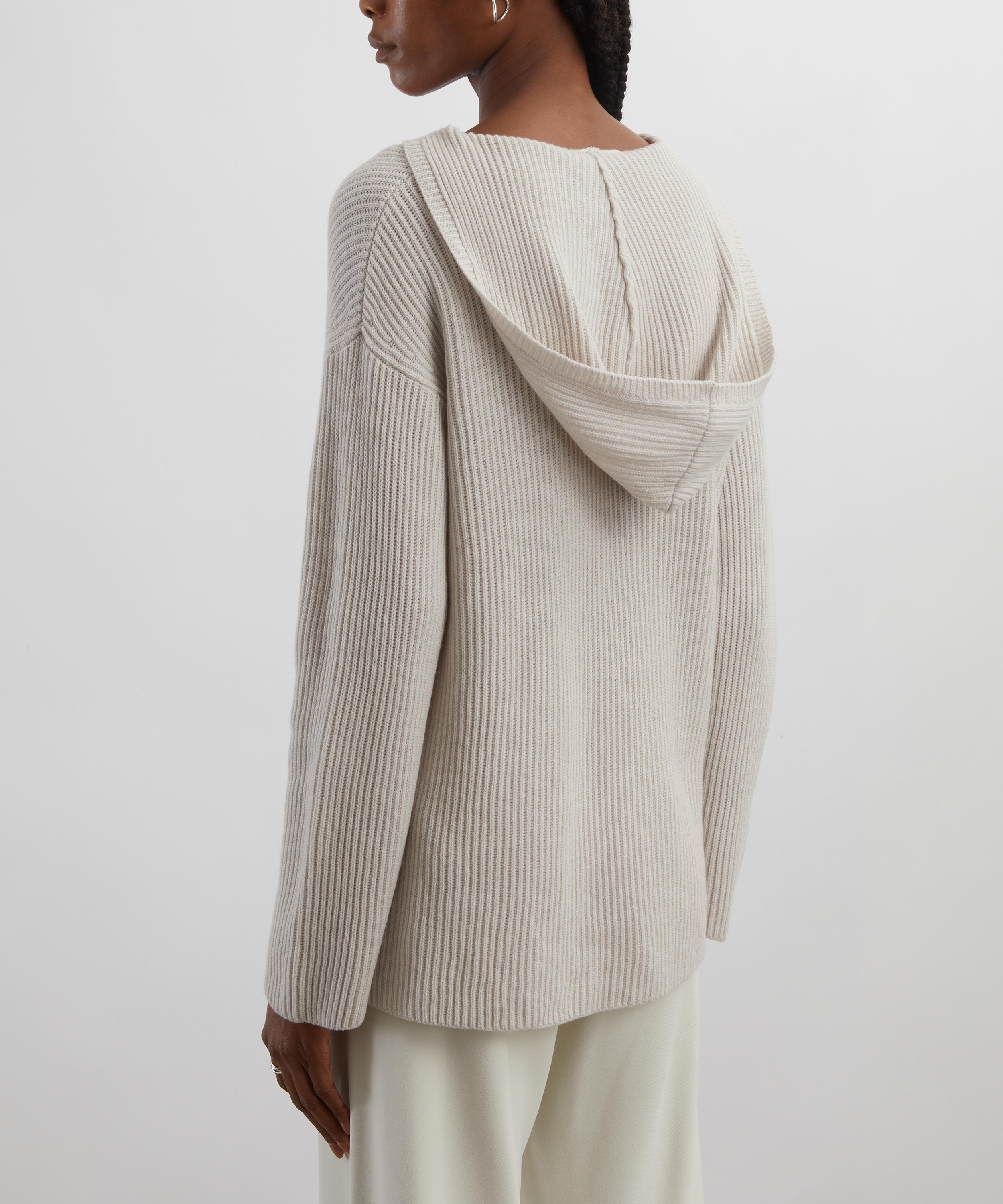 Crafted from wool in a decorative fisherman’s rib knit, this sweatshirt features a relaxed A-line silhouette with dropped shoulders, long sleeves, and a cosy hood - blending laid-back comfort with elevated texture.