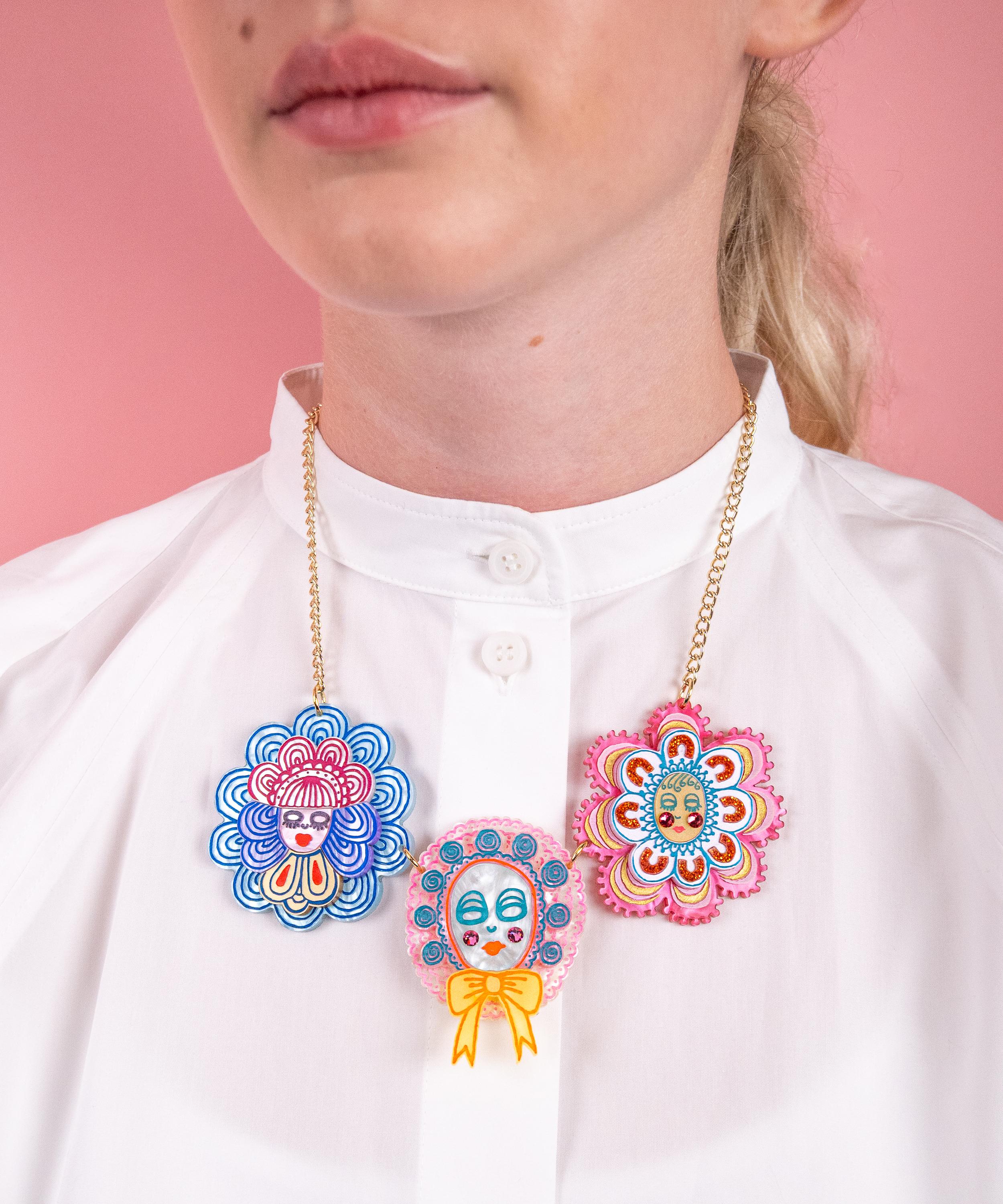Transform any outfit with this vivid and characterful Tatty Devine necklace, designed to celebrate Sir Grayson Perry’s 65th birthday and the corresponding Delusions of Grandeur exhibition at The Wallace Collection.