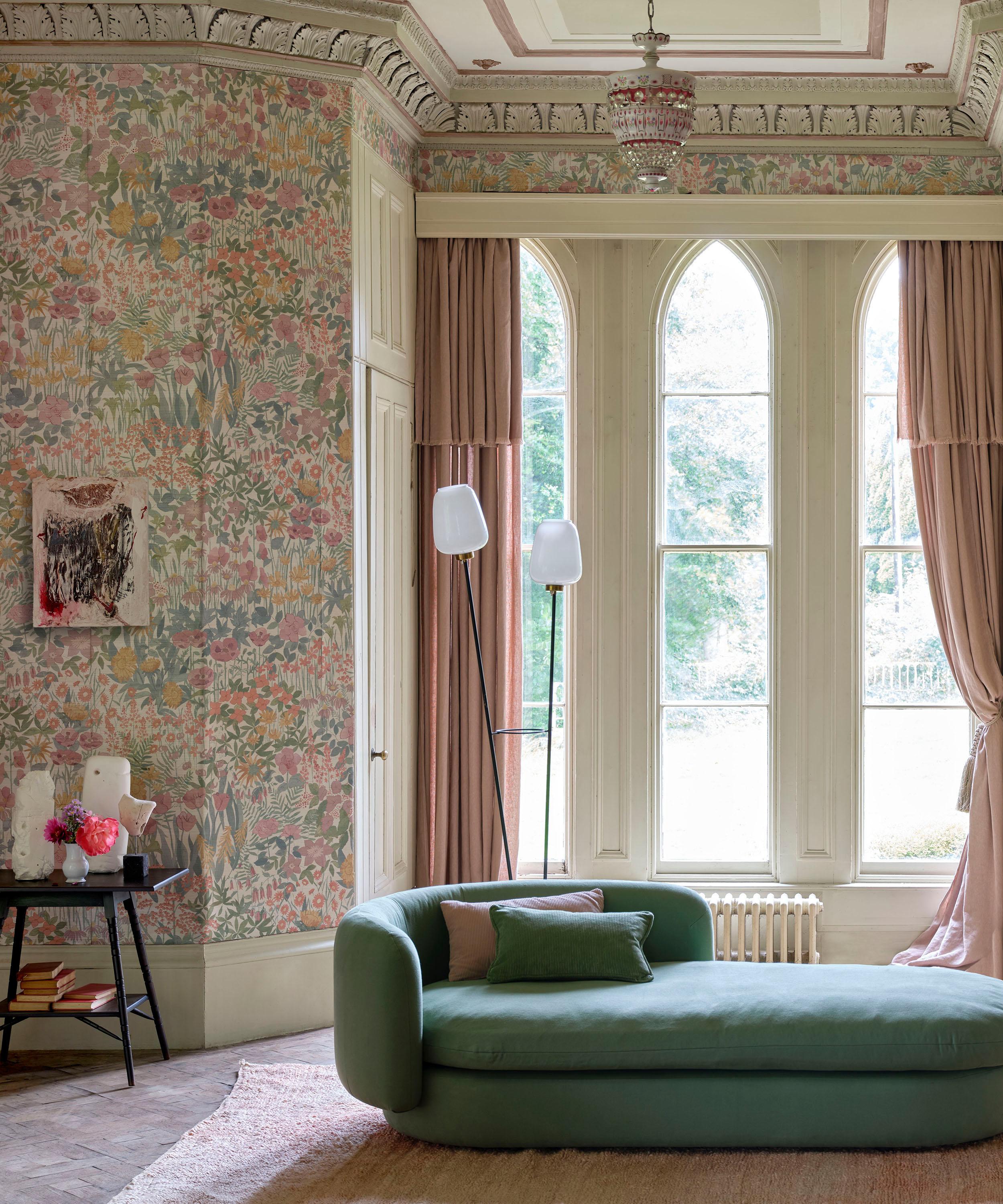 The House of Liberty wallpaper collection draws on pivotal moments that have defined Liberty as a leading tastemaker and artistic innovator of interior design. Framed by the rich textures and relaxed glamour of bohemian botanicals lies the genesis of Liberty. Inspired by discoveries in the renowned archive: rolling panoramic landscapes, blossoming trails, and painterly ditsies are elegantly offset with sophisticated geometrics and sartorial details, reimagined for conventionally and digitally printed wallpapers.