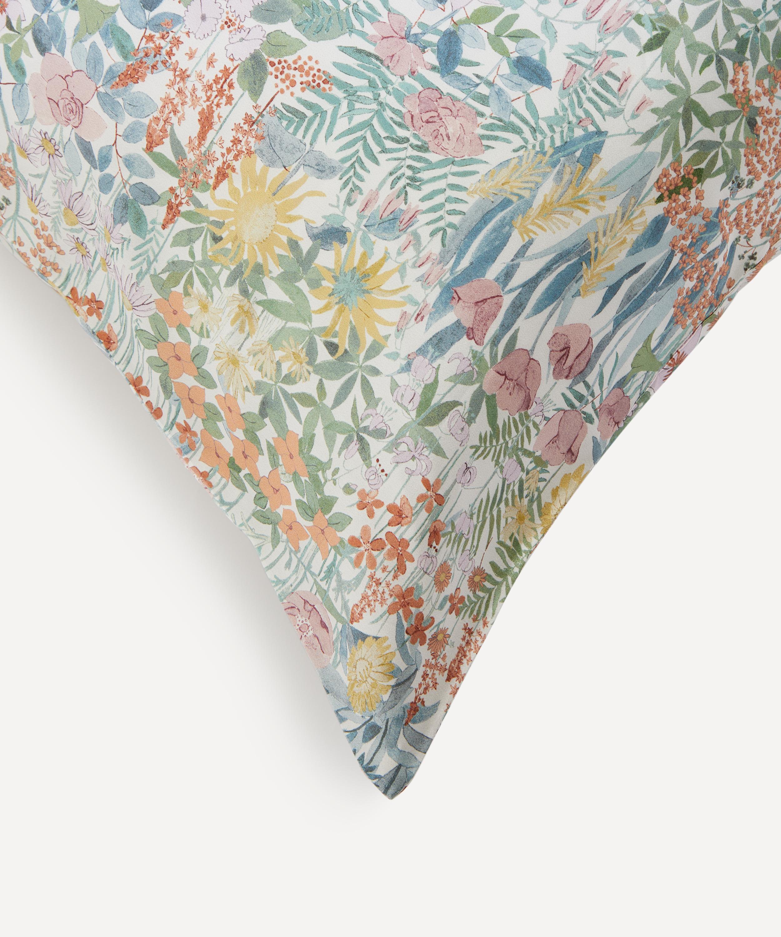 Expertly crafted from lustrous silk, this pillowcase showcases our Faria Flowers print – a hand-painted and hand-drawn design created from studies taken at the Royal Chelsea and Hampton Court by our Liberty designers. Pair it with contrasting patterns and prints for a dose of dopamine décor or layer it with your crisp white linens as a counterbalance to a pared-back bedroom set-up.