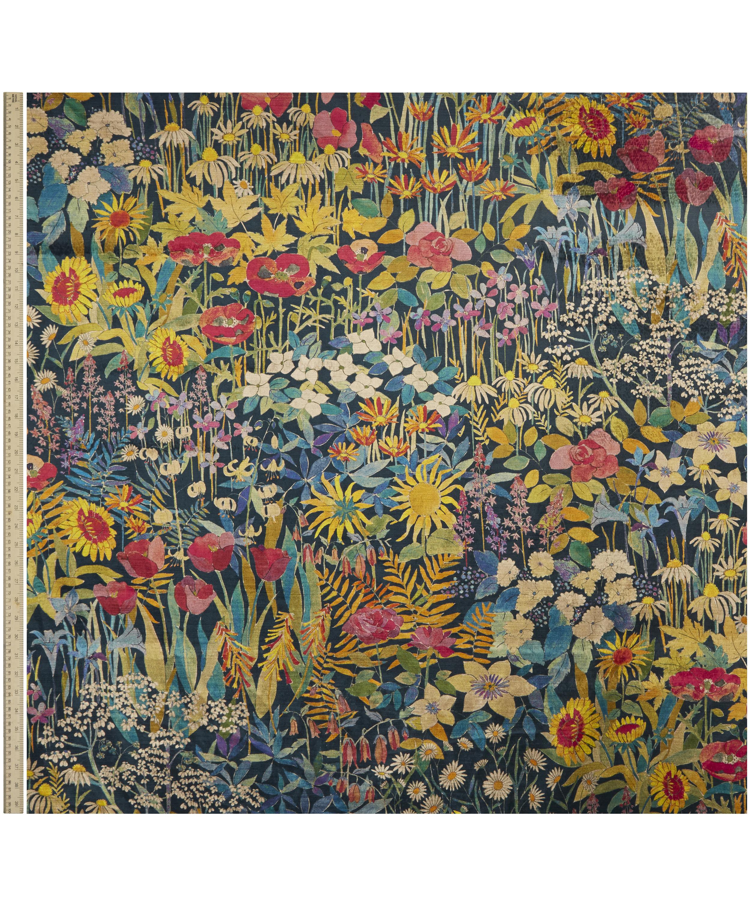 Faria Flowers furnishing fabric is a true carpet of flora inspired by the quote '…an' th' grass'll be a carpet o' flowers'. Gorgeous blooms can be seen growing out from mainly dark blotches, representing the earth and showcasing the garden at the height of its splendour and glory. The artwork is a larger scale version of the Floral Clay print.