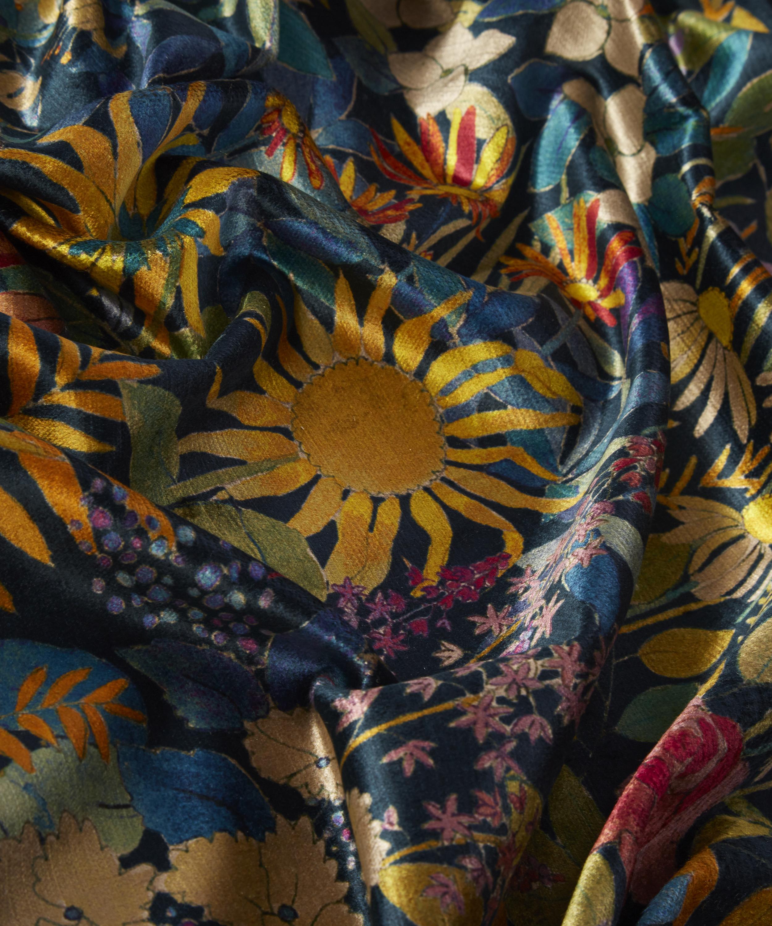 Liberty's Faria Flowers velvet furnishing fabric is an opulent option for upholstery, drapery or soft accessories.