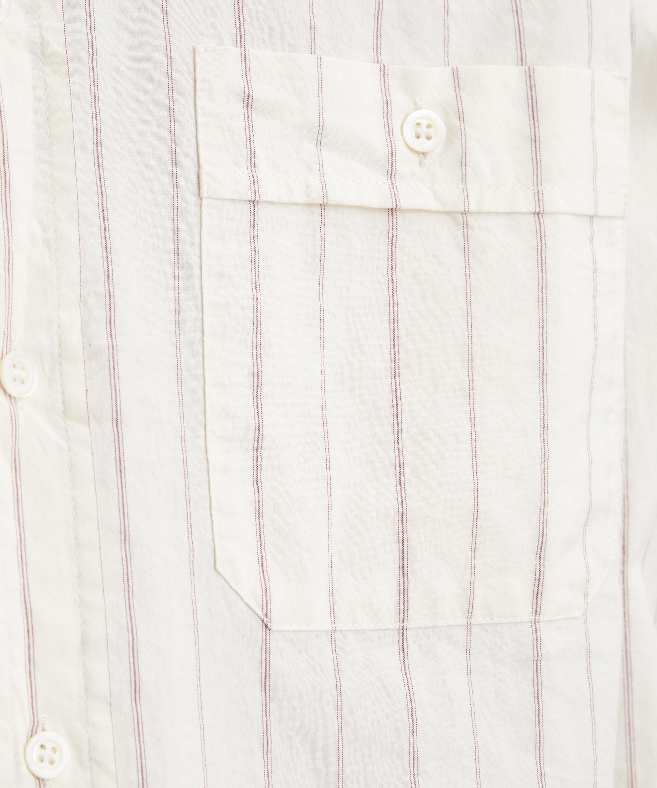 Crafted in Italy from crinkled striped poplin, this classic shirt is tailored for a boxy fit, featuring a point collar, button fastening, buttoned patch pocket, and long sleeves with angled, buttoned cuffs.