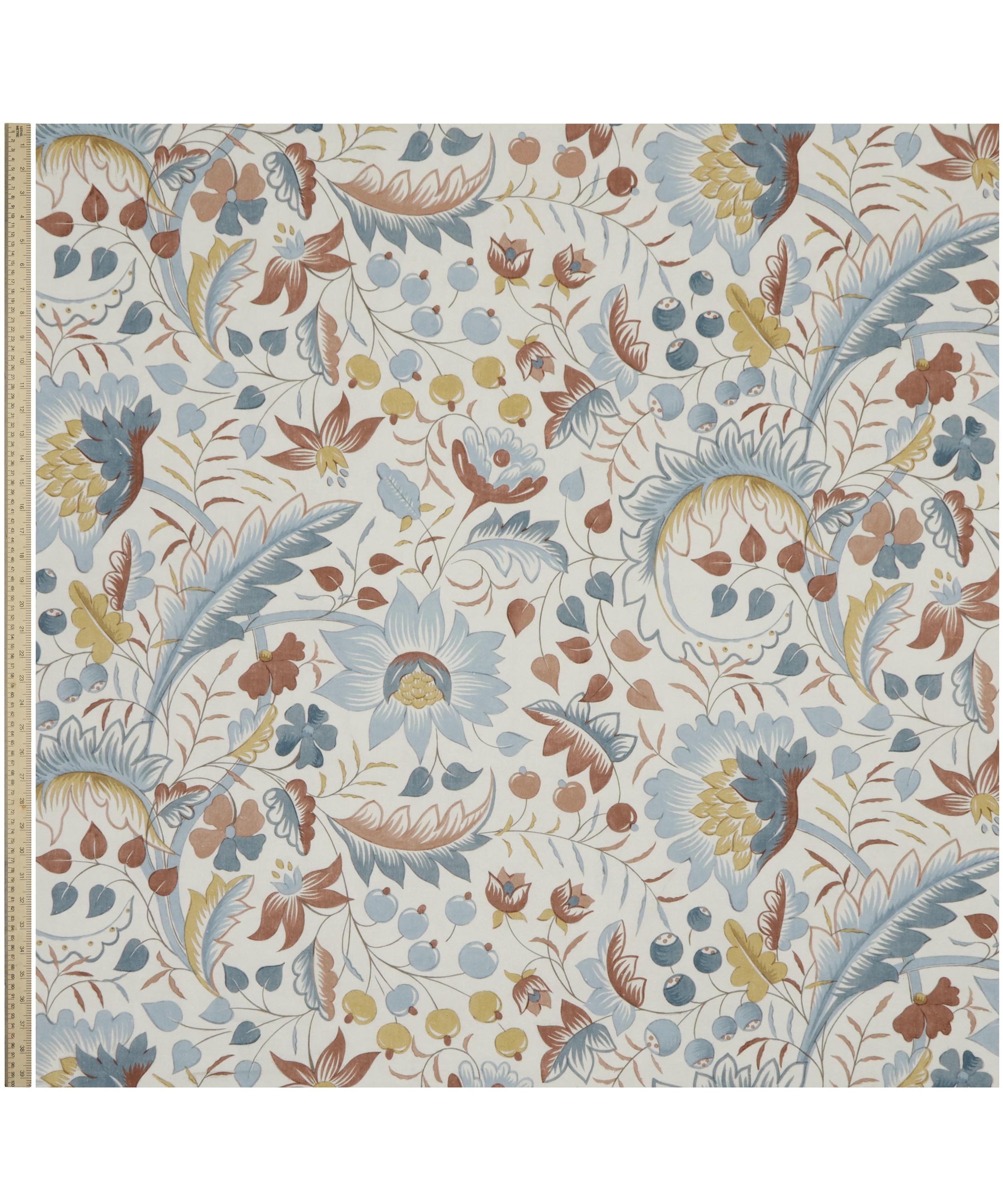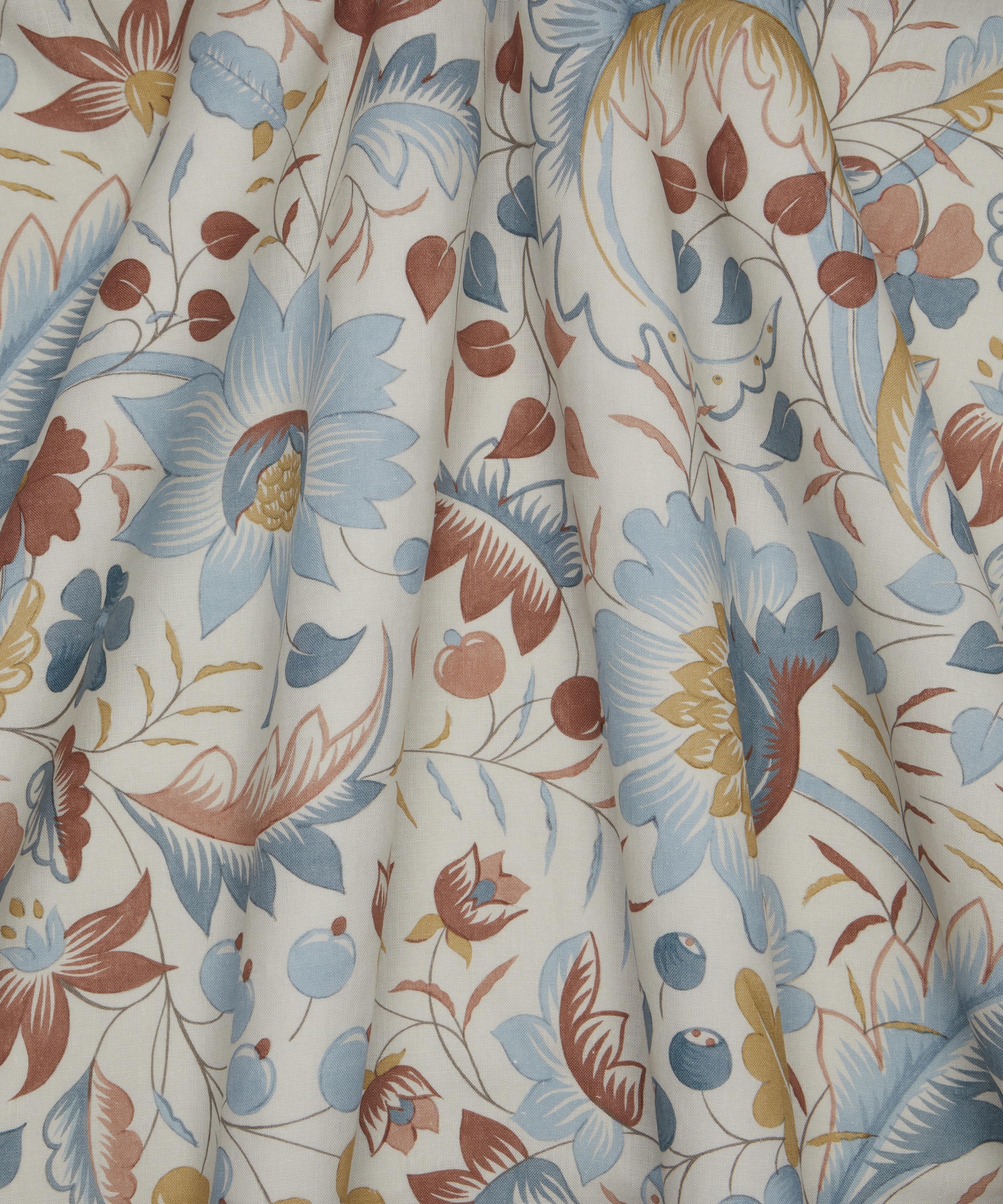 Inspired by a large-scale artwork discovered in the Liberty archive, this magnificent, trailing botanical of stylised flowers, leaves, and berries, was originally hand-painted in watercolour. Redrawn with graphic linework in refreshing palettes, Feather Trail captures a unique aesthetic that marries the tradition of decorative embroidery with a contemporary twist. Printed in Italy onto a beautiful linen with a heavy drape, this fabric is suitable for drapery, cushions, and accessories.