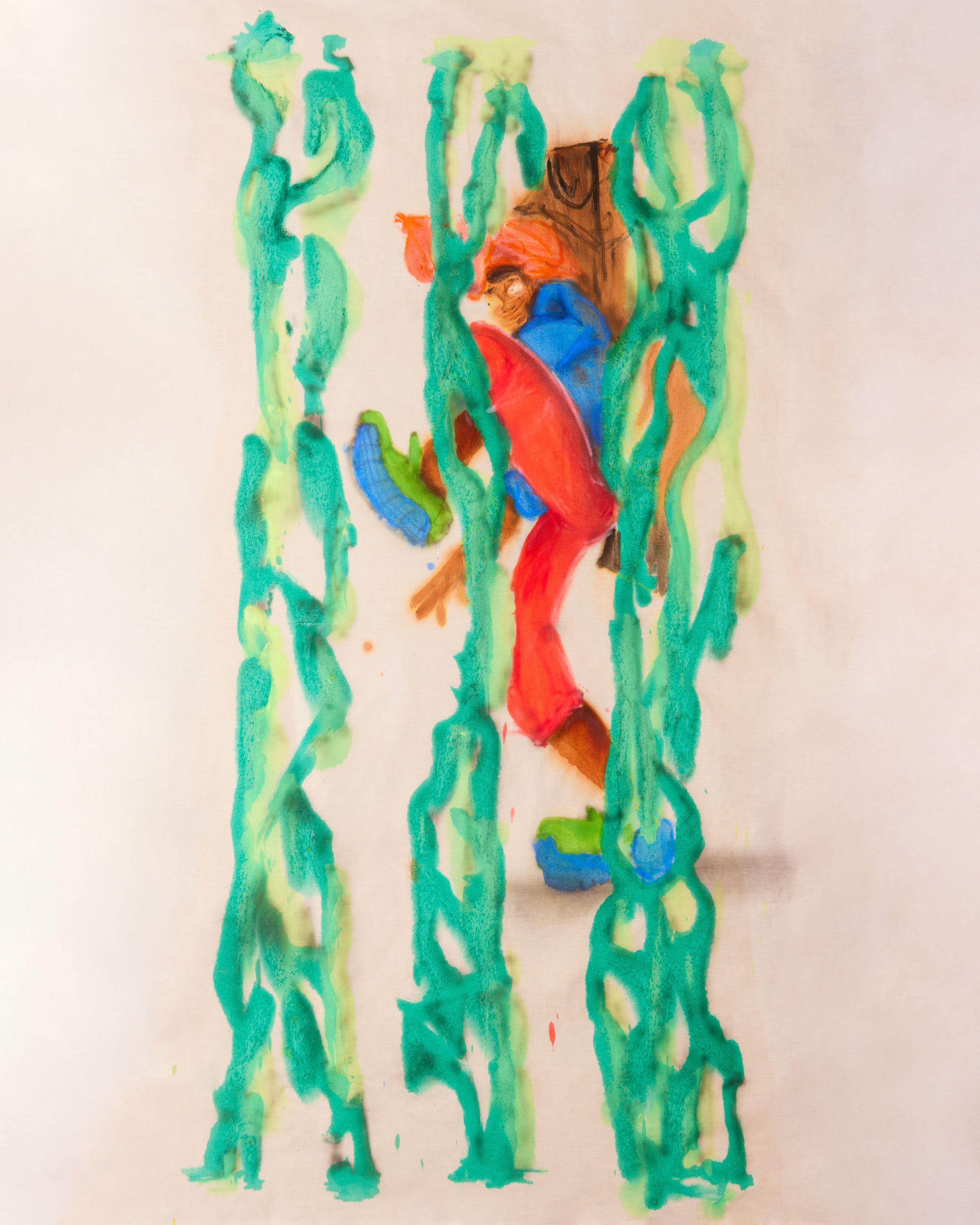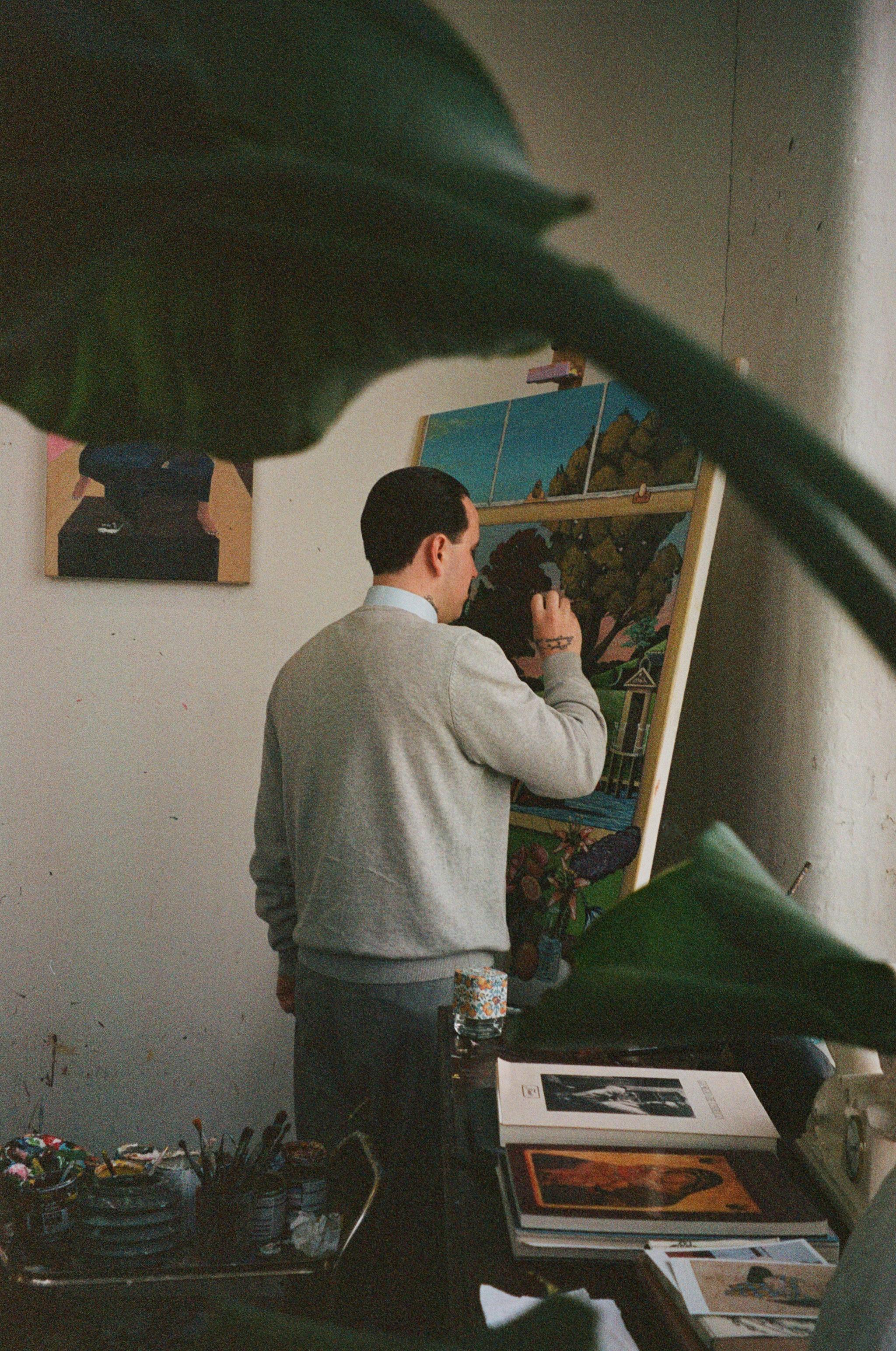 There are many different references. The main references are to Giorgio de Chirico in this specific piece, because of his idea about metaphysics, and that’s a very strong element in my work. I like to think that my painting is in a landscape, and the ideas of his metaphysical world bleed into my work.