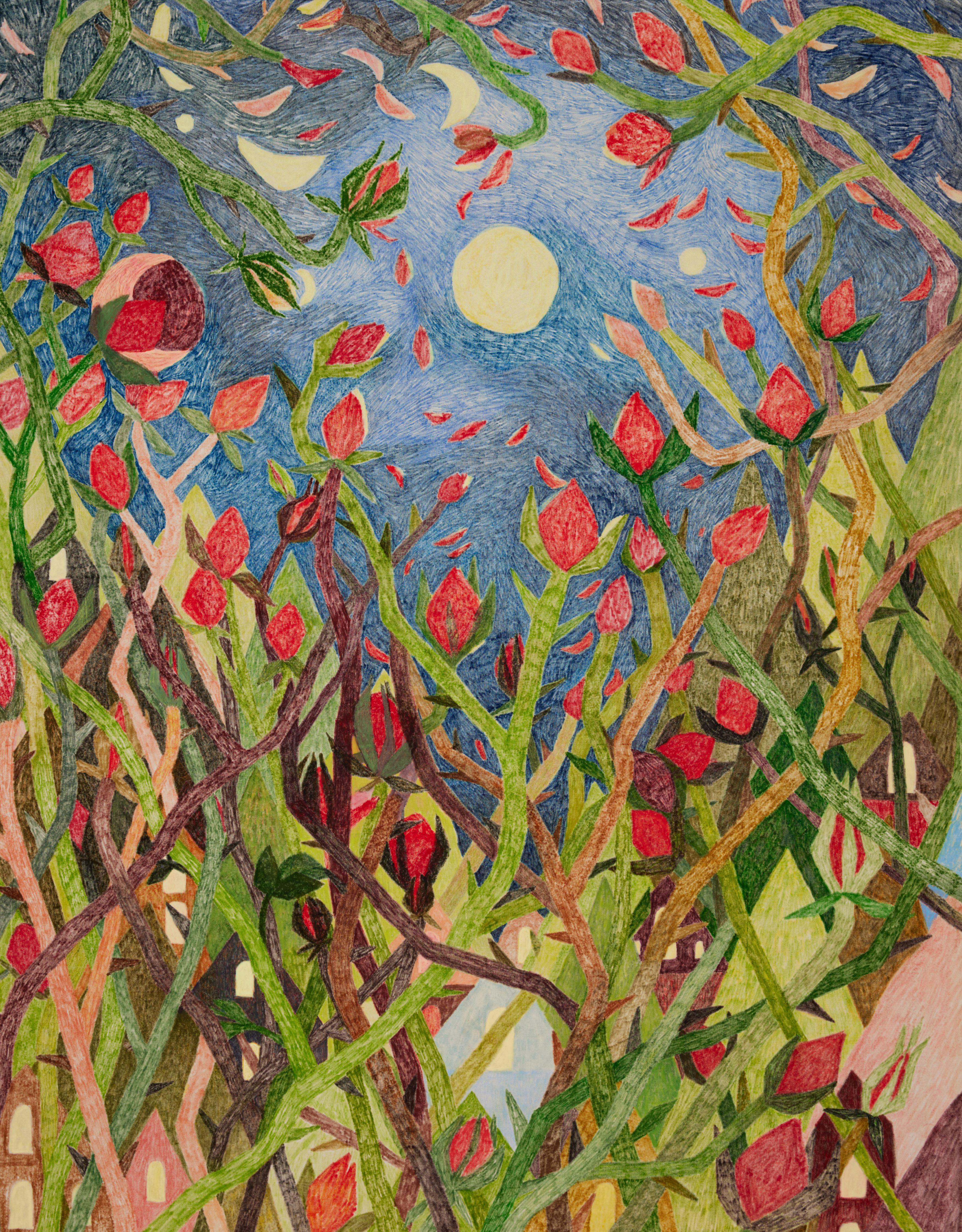 We live through screens and the internet, and people don’t really put that down to stand and look. That’s what painting does. It’s a testament to time. It makes you stop and actually just sit and look at something still, which is something that we don’t do anymore. I feel like this painting, especially with the inspiration I got from the flowers, plays into my current area of research.