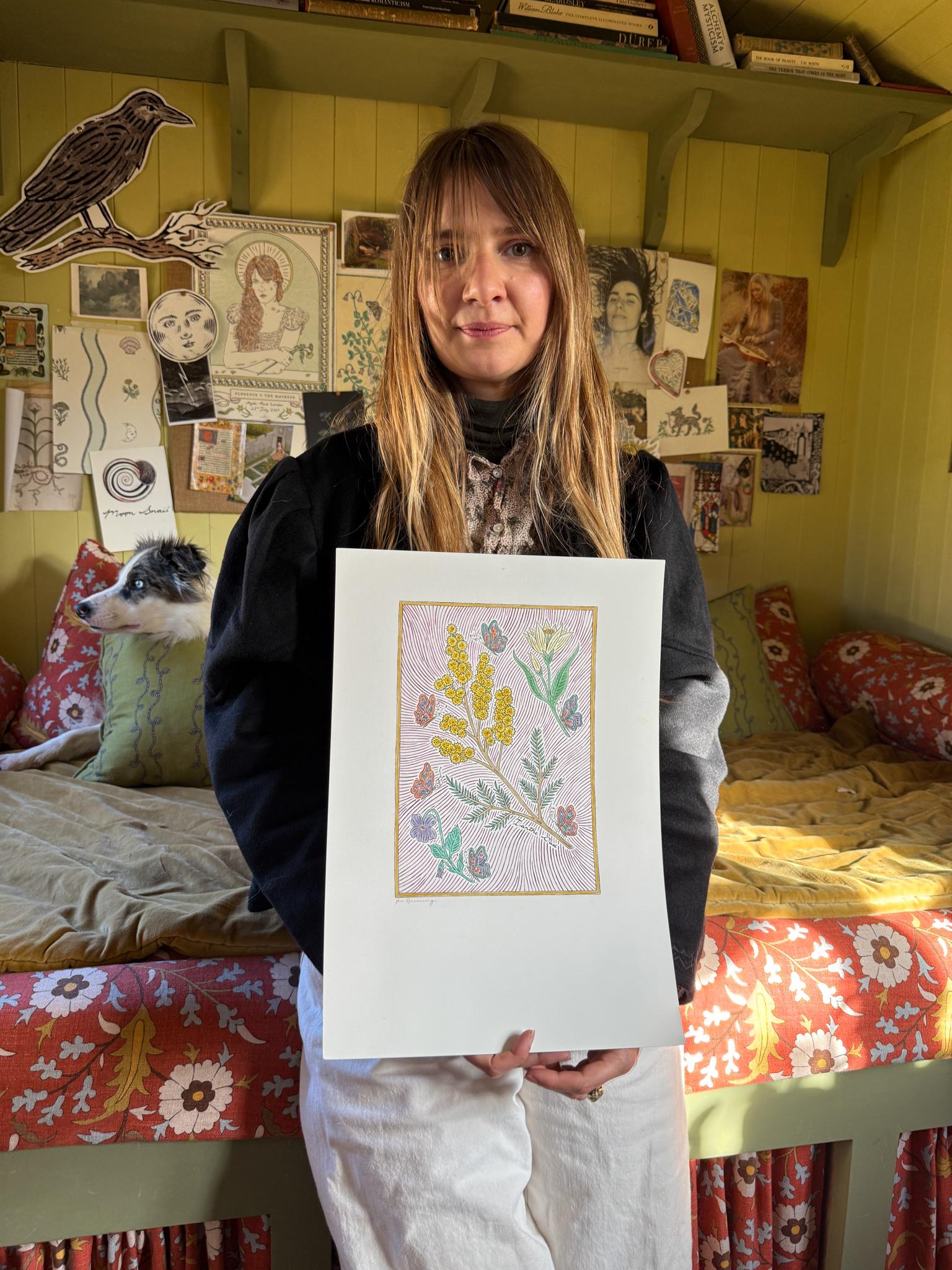 I love how the black ink lines make things feel tougher. A lot of what I draw is delicate: flowers, nature, animals, so the ink gives it edge. It stops it feeling too sweet. It gives everything a darker, slightly tougher feel than pencil or watercolour alone.
