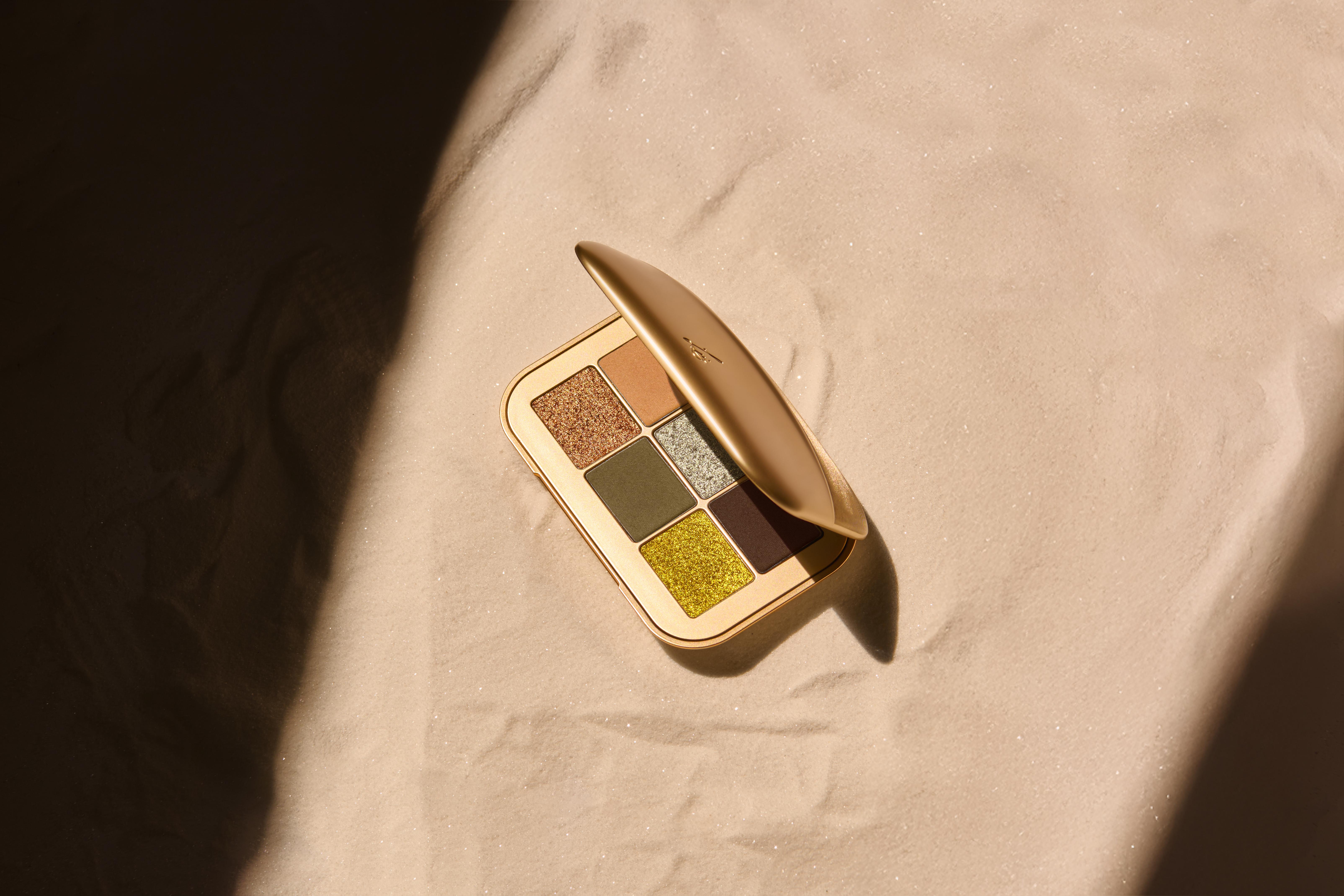 Something of a colour pro, Eldridge laboured over selecting the perfect spectrum of hues. “The Desert Gleam Eyeshadow Palette is a sandstorm of shades and textures – where editorials in the sand dunes meet the high glamour of Studio 54,” she muses. “This palette really has multiple lives. By day, Desert Gleam exudes a soft sculptural quality with rich, creamy matte tones of sand, brown and khaki. By night, Safari chic meets Studio 54, with a jewelled scarab metallic silver, pure never-ending gold, and a bronze that shines like evening stars reflected on the dunes.”