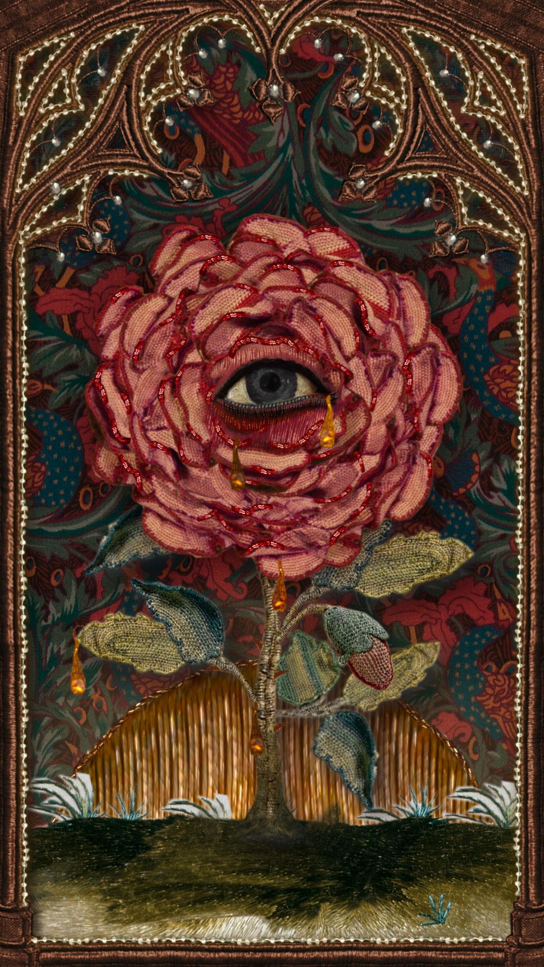 The original name of the artwork was "The Last Living Rose" and was taken from the PJ Harvey song from the album Let England Shake. But at the end I changed the title of the artwork to "The Hundred Leaved Rose" or "A floral fantasy in an old English garden", as both titles take their inspiration from elements featured within the imagery and from the world of the artwork.