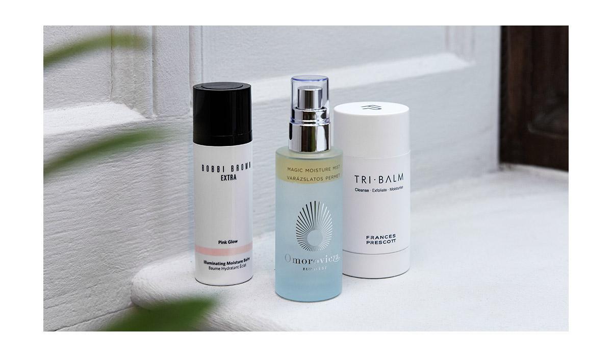 “Cult for good reason, TriBalm is the ultimate time-saver – its balmy formula is mess-free and perfect for travel, acting as a cleanser, exfoliator and moisturiser in one. A spritz or two of Omorovicza’s Magic Moisture Mist is perfect for post-cleanse nourishment, while Bobbi Brown’s Extra Illuminating Moisture Balm in Pink Glow gives a bit of colour, a burst of hydration, and a whole lot of glow – so then I’m good to go.”