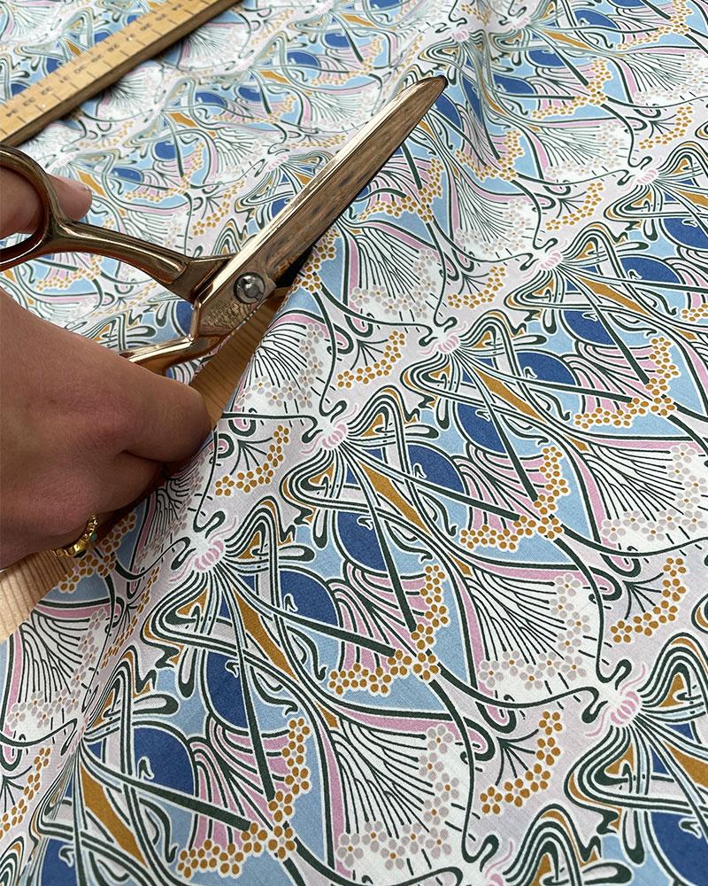 Measure the length and width of your table, and choose two coordinating Liberty Tana Lawn™ fabrics. We chose recoloured interpretations of two of our most iconic Liberty heritage designs: Ianthe Tana Lawn™ Cotton, £25 per metre for the main bulk of the tablecloth with Empress Tana Lawn™ Cotton, £25 per metre to create the ruffle trim.