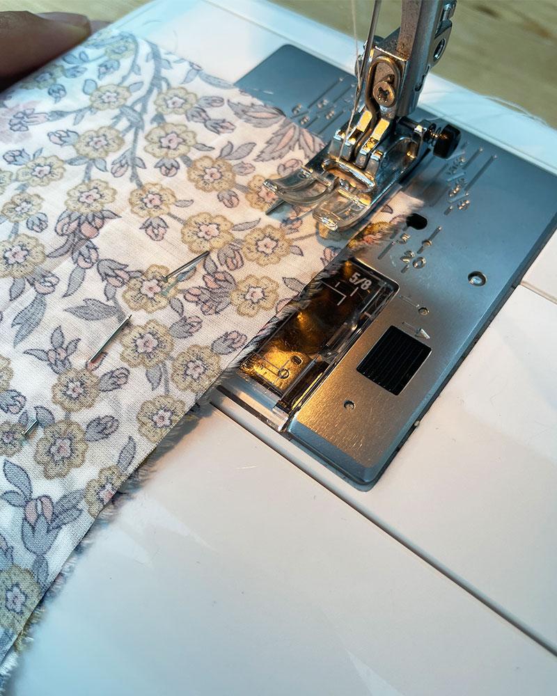 TIP: If you have a gathering foot for your sewing machine, you can speed up the ruffle process. Stitch along the raw edge of your folded strip by holding your finger behind the foot while pressing the fabric.