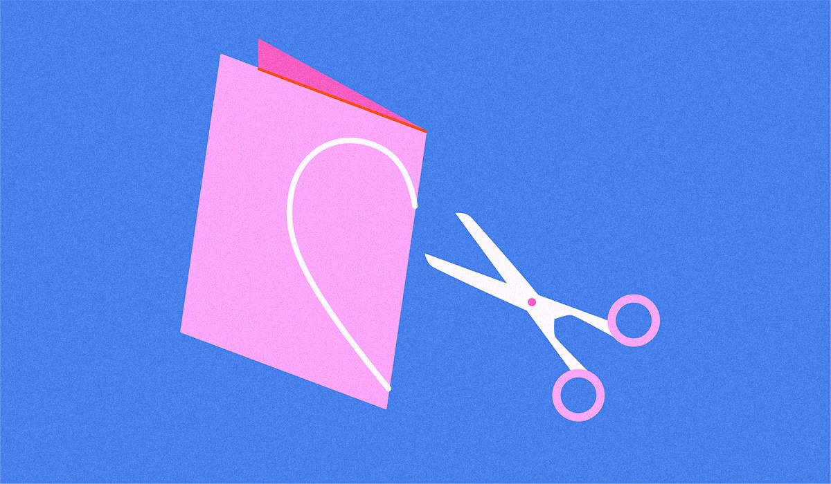 To create a paper template for your heart: fold a piece of paper and cut a curved half-heart shape towards the central fold - then fold flat again to see your heart shape. Fold the heart in half again and trim further to tidy up the shape, if you need to.