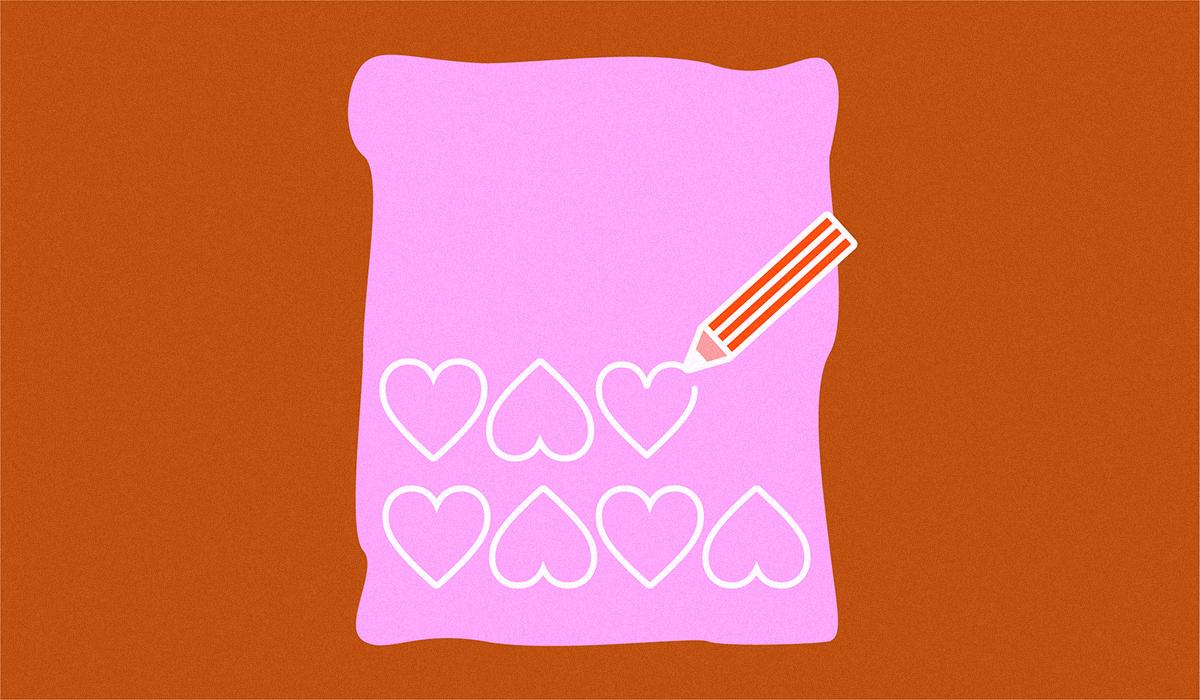 First, plan how many hearts you will need – this could be to fill a certain wall space, mantel, or to spell out a particular message (ours will say “I ♡ Liberty”, of course). You will need two cut-out hearts per garland heart, for the front and the back sections.