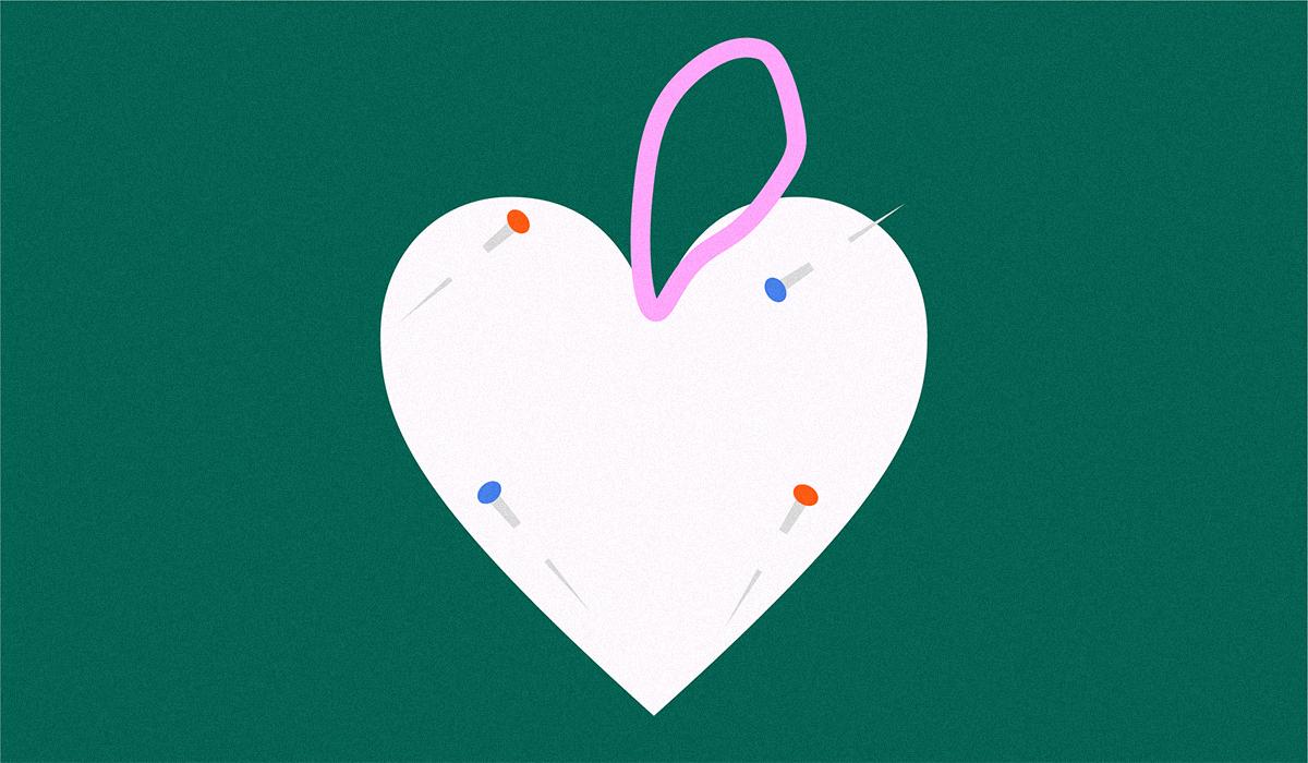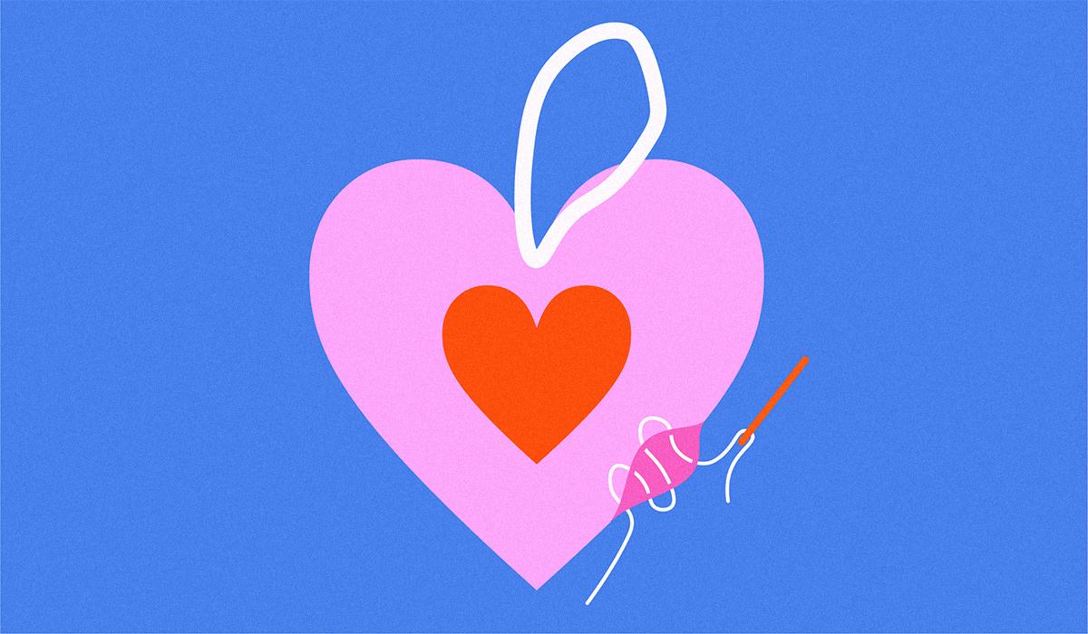 Carefully turn the stitched heart inside out, and fill with batting or stuffing. Then hand-stitch the opening shut with a needle and a matching thread.