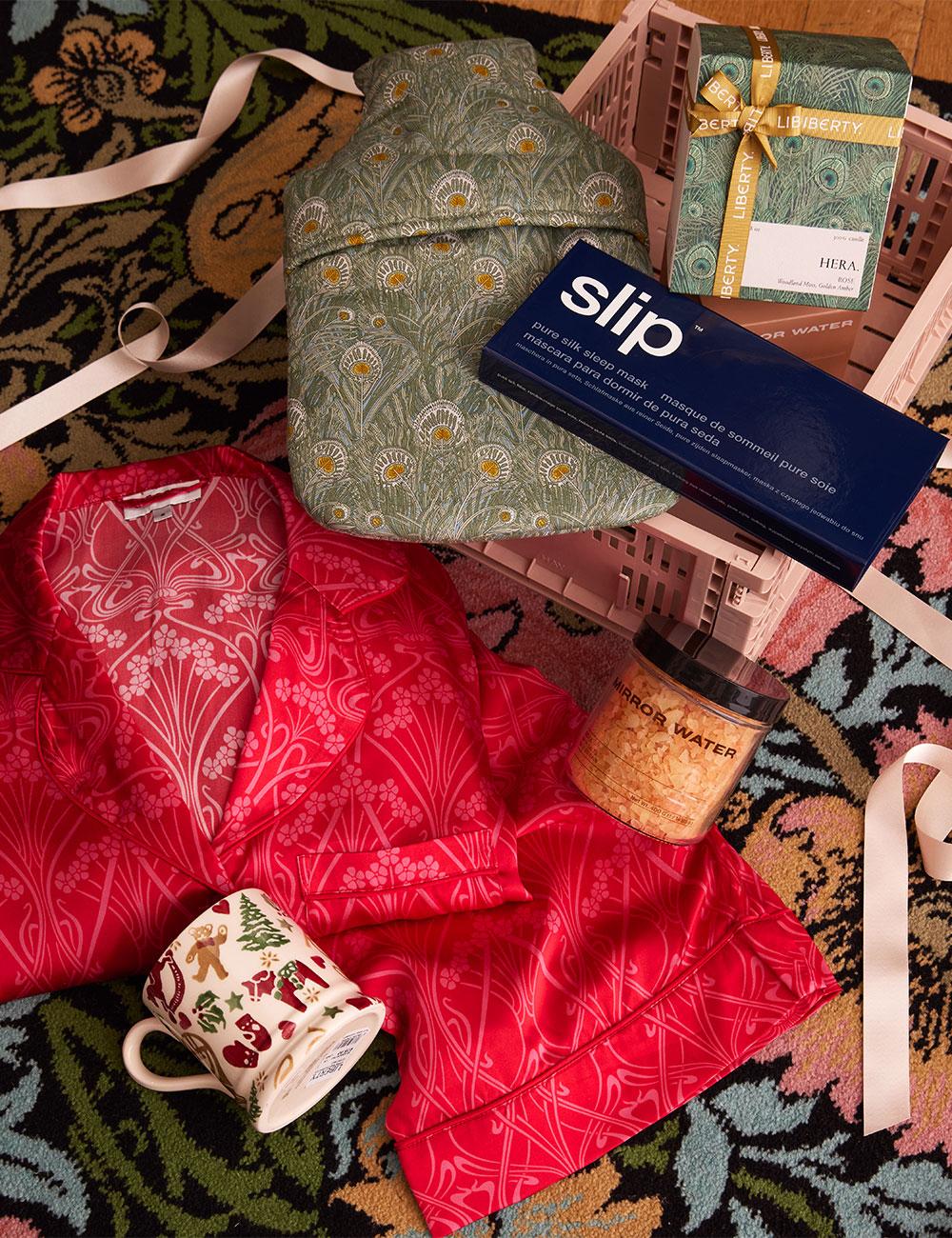 Christmas Eve, one of the most magical nights of the year. The mince pies are warming, the mulled wine is simmering and the carols are playing. But, there’s always room for a little more festive sparkle. Of course, every household has their own festive traditions, from making a wish as you stir the Christmas cake to wearing the same festive jumper every single year, but this year at Liberty we are proposing a brand new tradition, one that will bring that extra dusting of joy: a Christmas Eve box. So easy, so effective. Fill a box with all the gorgeous things guaranteed to get you ready for the big day. Because every Christmas Eve should come with silk pyjamas, scented candles and a glow giving face mask. Right?