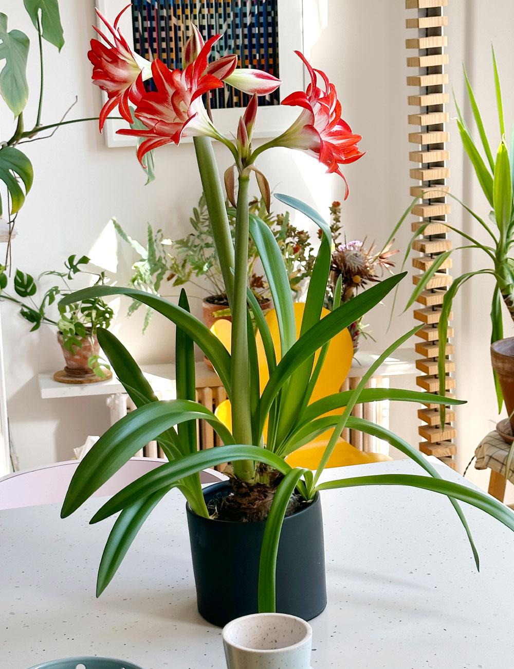 I find joy every day in my plants. I have an amaryllis that just bloomed, and tending to it and watching it grow has been a real highlight of my mornings. Feeling responsible for nurturing this beauty to life is a lot like the creative process. A little every day and boom, this insane flower pops out. The payoff is pretty great.