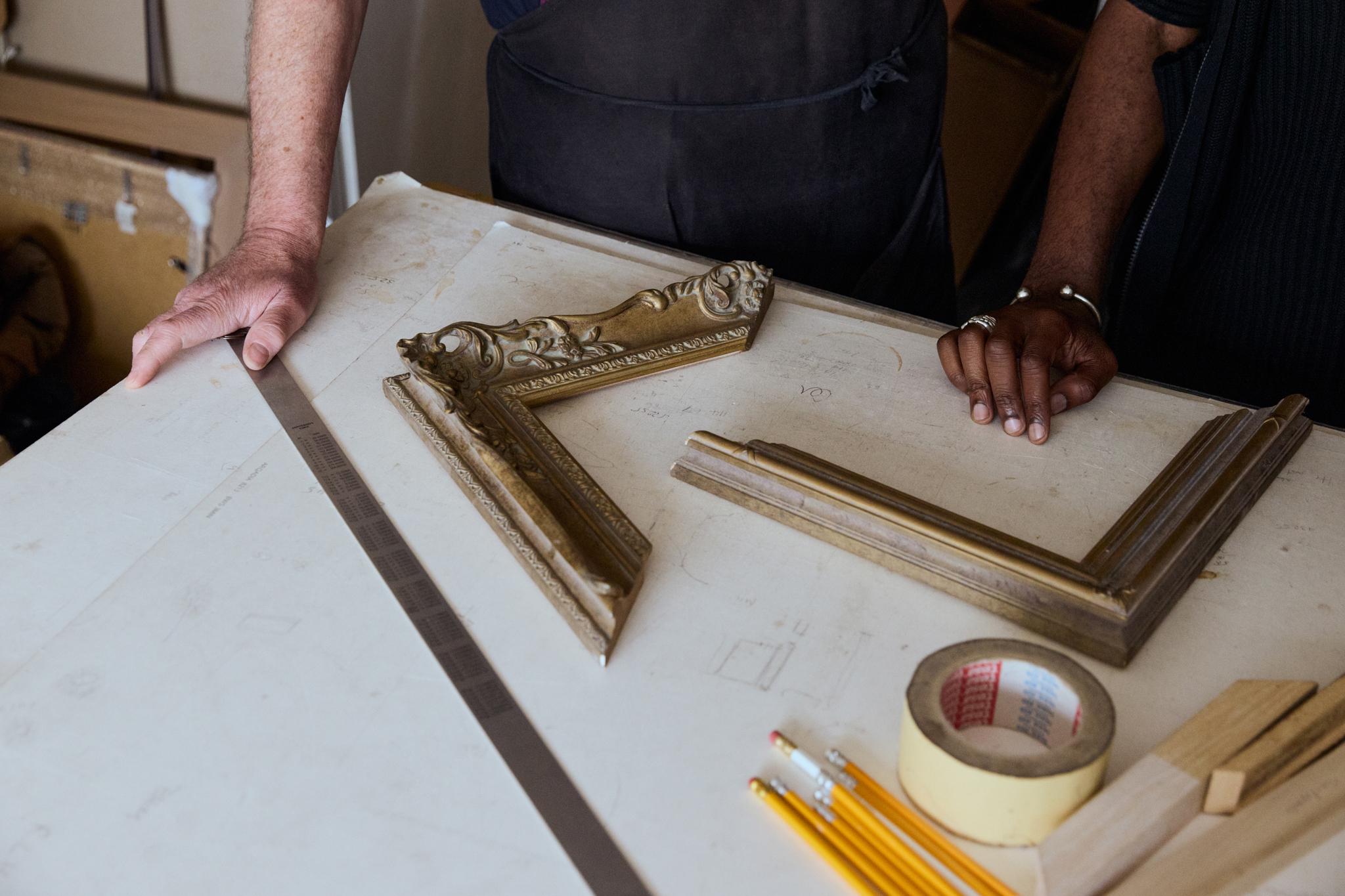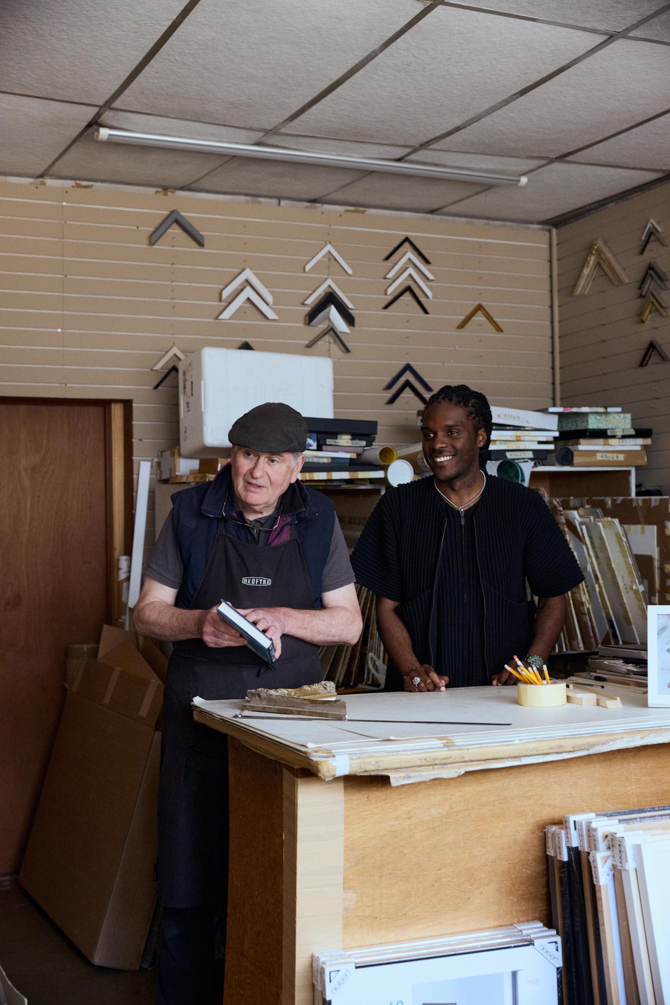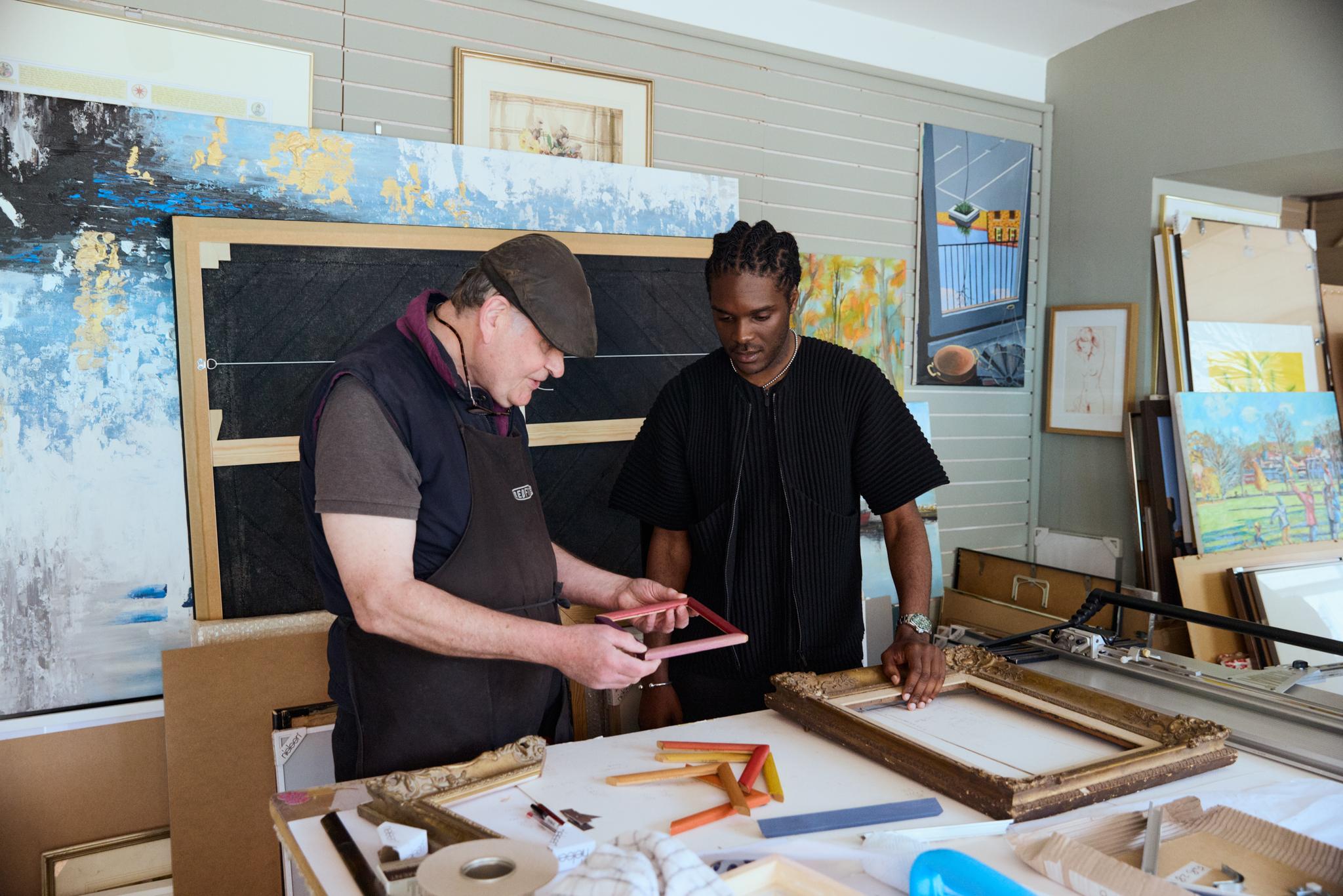 Jimmy Davidson and Xavier Leopold in Davidson's framing studio.