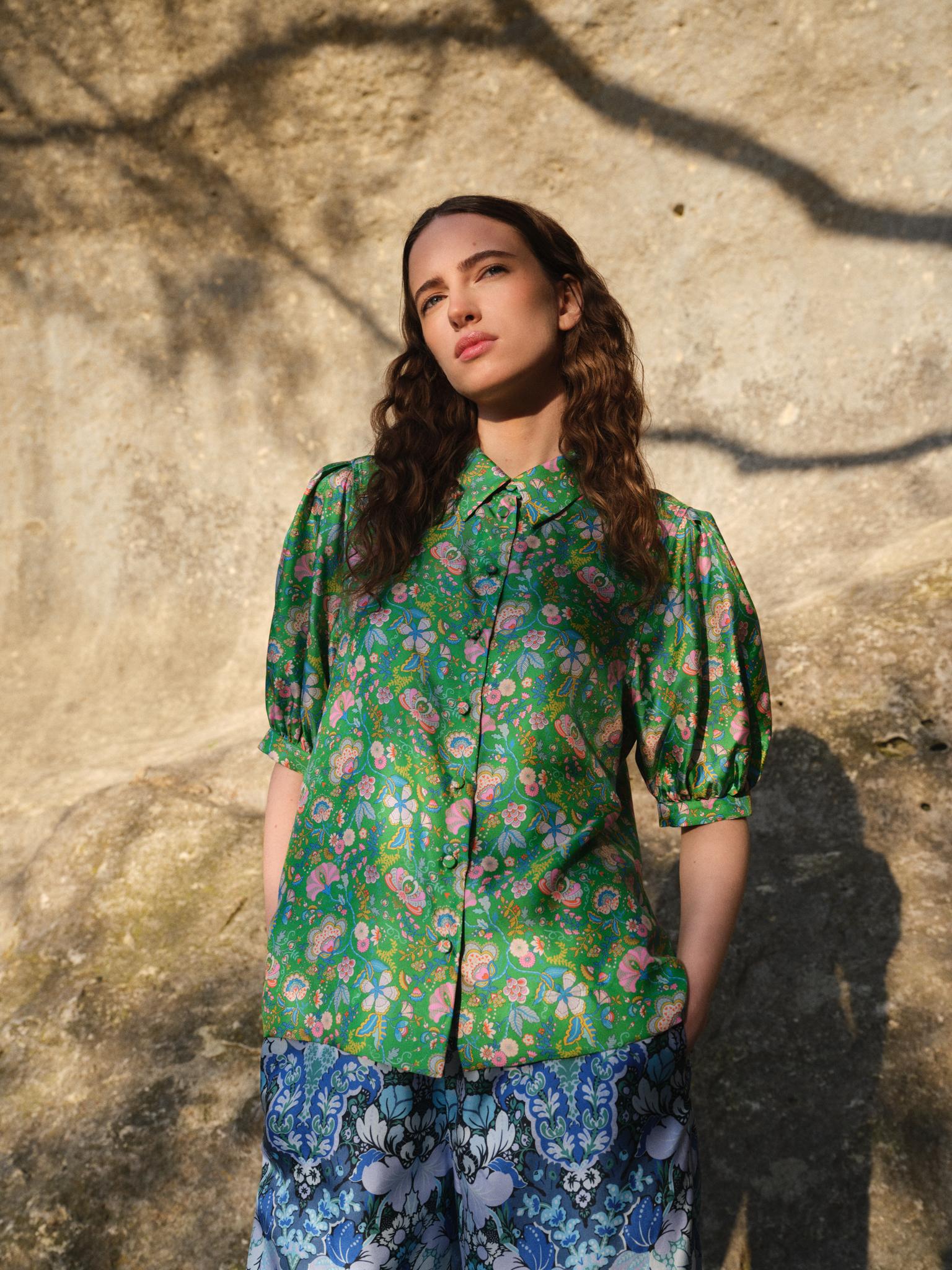Once fresh off the printing press, and before being quality-checked by eagle-eyed master printsmen (every inch of every textile has to meet Liberty’s exacting standards), these hand-designed fabrics are then shipped back to Liberty HQ where our product specialists transform them into wearable works of art. Taking approximately six months, it’s a complex, multi-stage process that sees prints cherry-picked and thoughtfully paired off with products, and silhouettes meticulously developed until the sweet spot between supreme comfort and style is struck. Only then – with the expertise of Liberty’s favoured ateliers and tailors – can each garment’s finest details be perfected, from finessing fit for supreme comfort and selecting trims that enhance our prints to picking out buttons that look