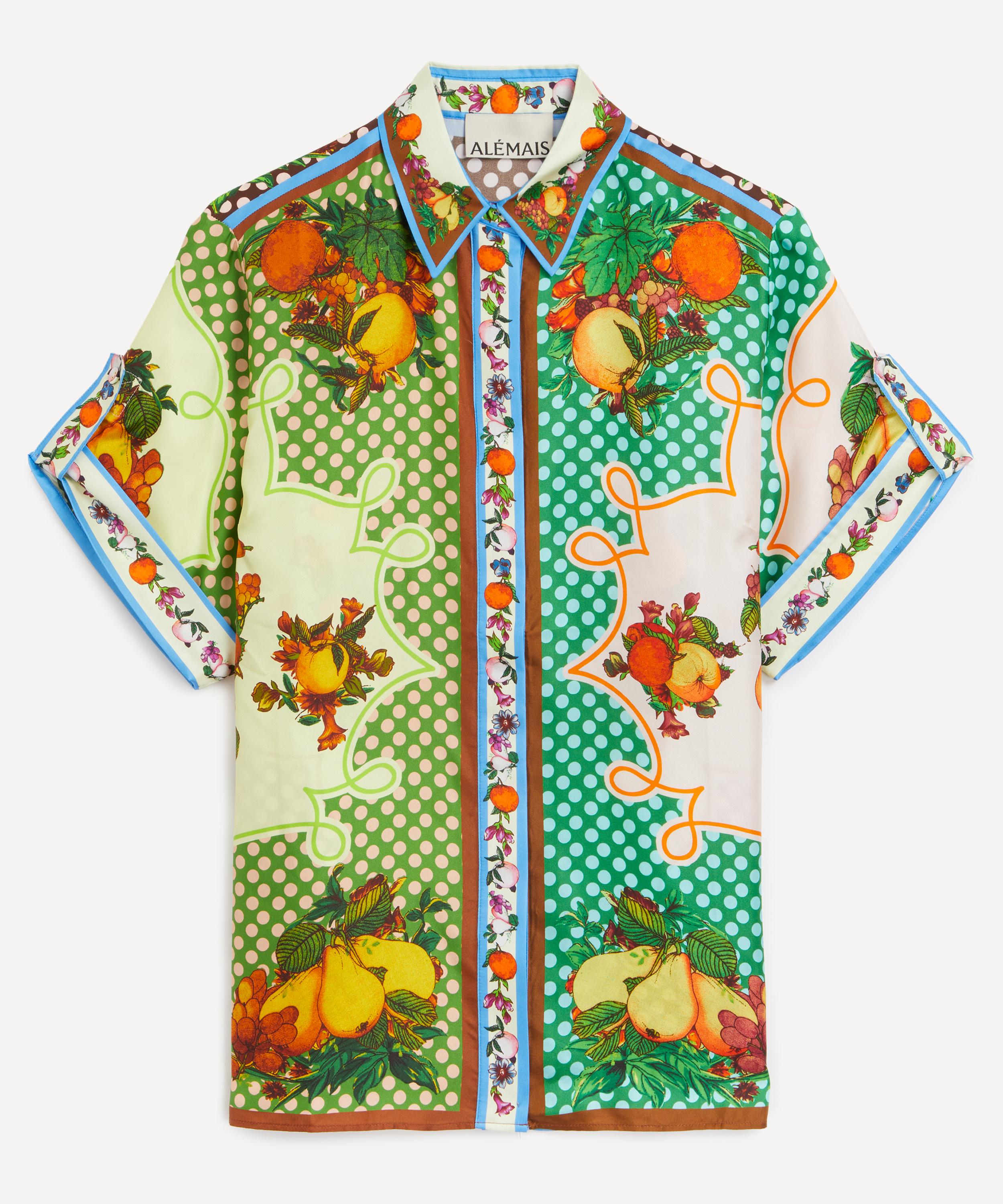 Bold and blooming with sun-ripened citrus fruits and flowers, this statement silk shirt from Alémais defines dopamine dressing. Made to be paired with the matching joggers this two piece is set to become a staple addition in your warm weather wardrobe.