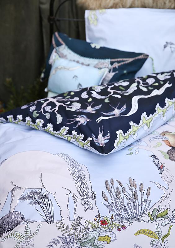 Rebecca | I have always been a lover of a long-distance rail adventure and had just travelled London to Hong Kong by train. On the journey I tried, and failed, to write a story for my goddaughter Coco, and had been trying to find organic bedding, unable to find anything other than plain white. With these thoughts, alongside daily reminders of our planet's crises from my job at the Environmental Justice Foundation, I went to bed. In that strange moment between asleep and awake, I had the idea for bedding that transforms from day to night, that could encourage children away from screens into a storytelling world where nature was the greatest inspiration but a spot of magic and the odd mythical creature would create a world they could continue exploring in their dreams. It would also be a way for children to learn about habitats and wildlife, with the hope they would fall in love with these creatures and want to protect them in the future.