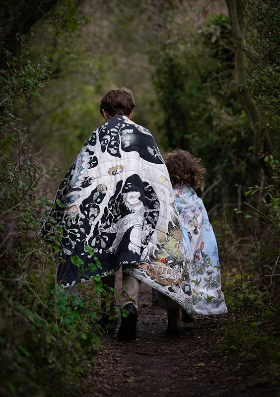 So far, we’ve focused on wildlife on our doorstep, researching the Legends of the Sea design at the wonderful Anglesey Sea Zoo, where they only have British marine wildlife. We were blown away by the extraordinary sea creatures that inhabit our seas: the cuckoo wrasse which can change gender and wolf fish which have something akin to anti-freeze in their blood. Storytelling is integral to Forivor. We draw on our favourite authors and illustrators from childhood; Maurice Sendak, Gerald Durrell, Tolkien, Kit Williams who had treasure clues to a buried golden hare within his books, and Peter Dallas-Smith who brought to life the detailed world of Trouble for Trumpets. Once we have our theme, we take great care considering the design from a child’s perspective, creating details like in a book illustration for them to explore, with an aesthetic that appeals to children and adults alike.
