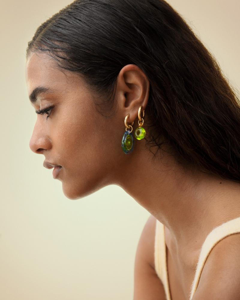 I know it sounds like a very vague answer but the truth is that I do just draw inspiration from my everyday life - from what I eat, see, feel, read etc. For example we have this plant at home with seeds shaped like miniature pomegranates. As a joke I hung them from my hoops and loved how they looked! So I sent a pic to my Spanish suppliers and asked them to make one with the same proportions, but with an orange trim to make it more obvious as it’s a very teeny tiny piece.