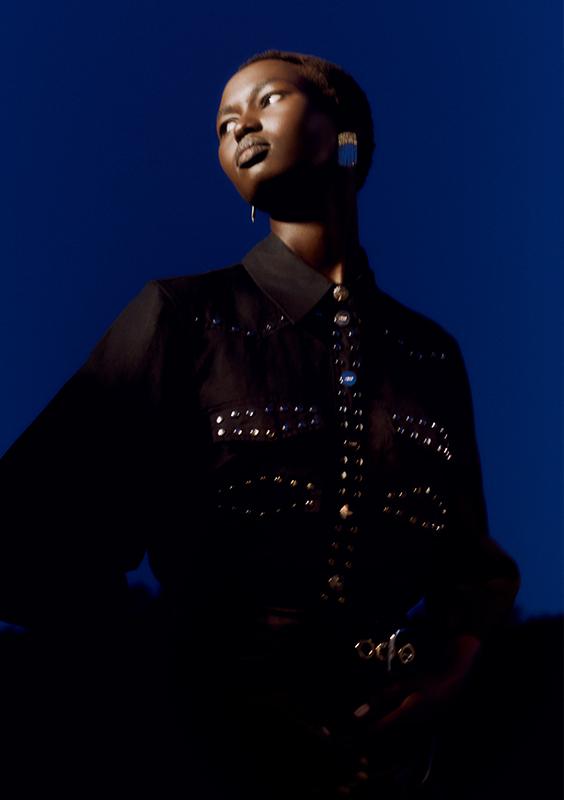 “If you want playful, you go Ganni. Paired with artist Anissa Kermiche’s decadently tasselled earrings, this shirt is a youth-infused, high-shine take on the Western styles that were seen on the season’s catwalks.”