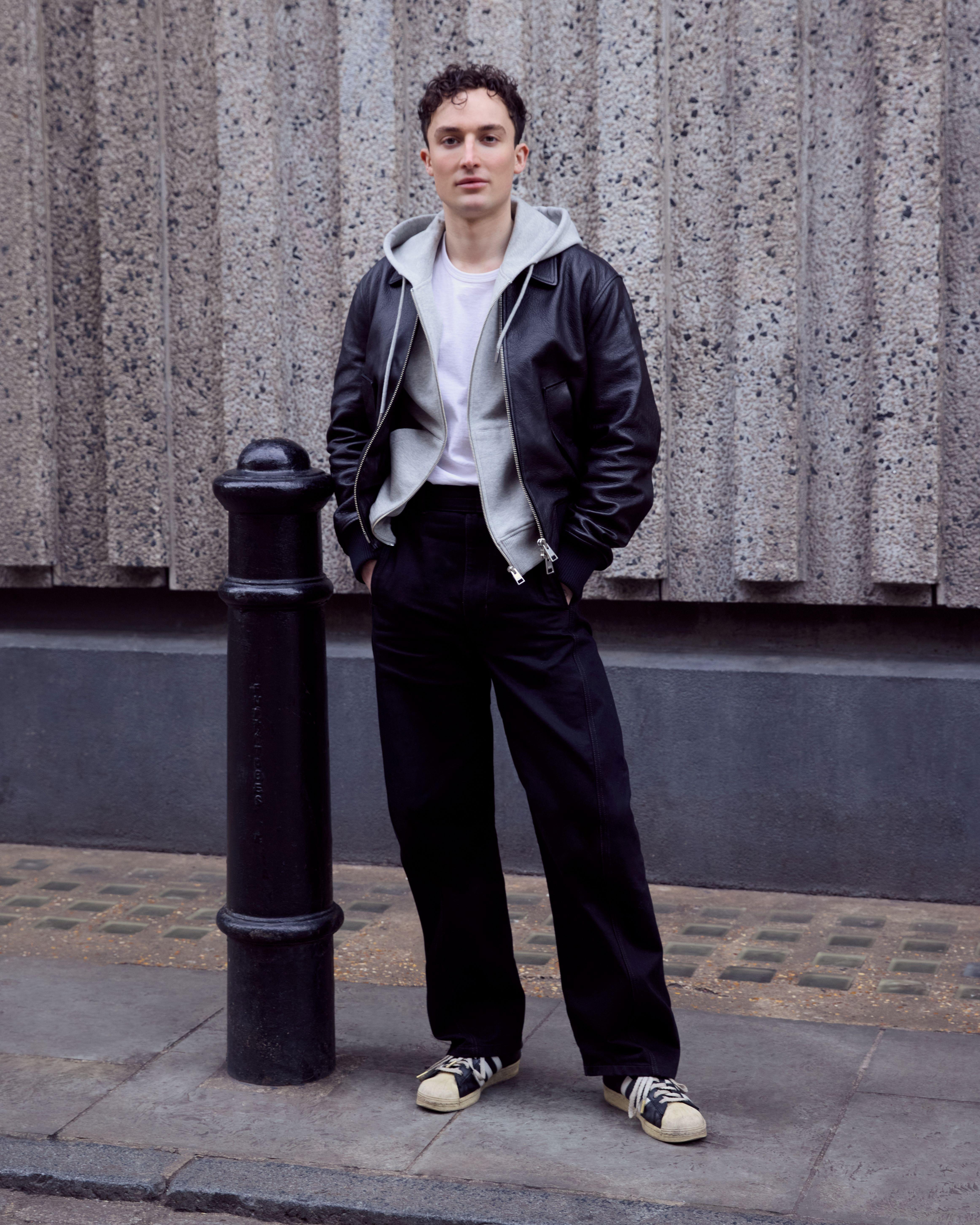 “Ami is always my go-to for elevated essentials, and this leather jacket/hoodie combination is perfect for the everyday. I've paired it here with some jeans from Lemaire which fit like a dream and a classic tee from Colourful Standard.”