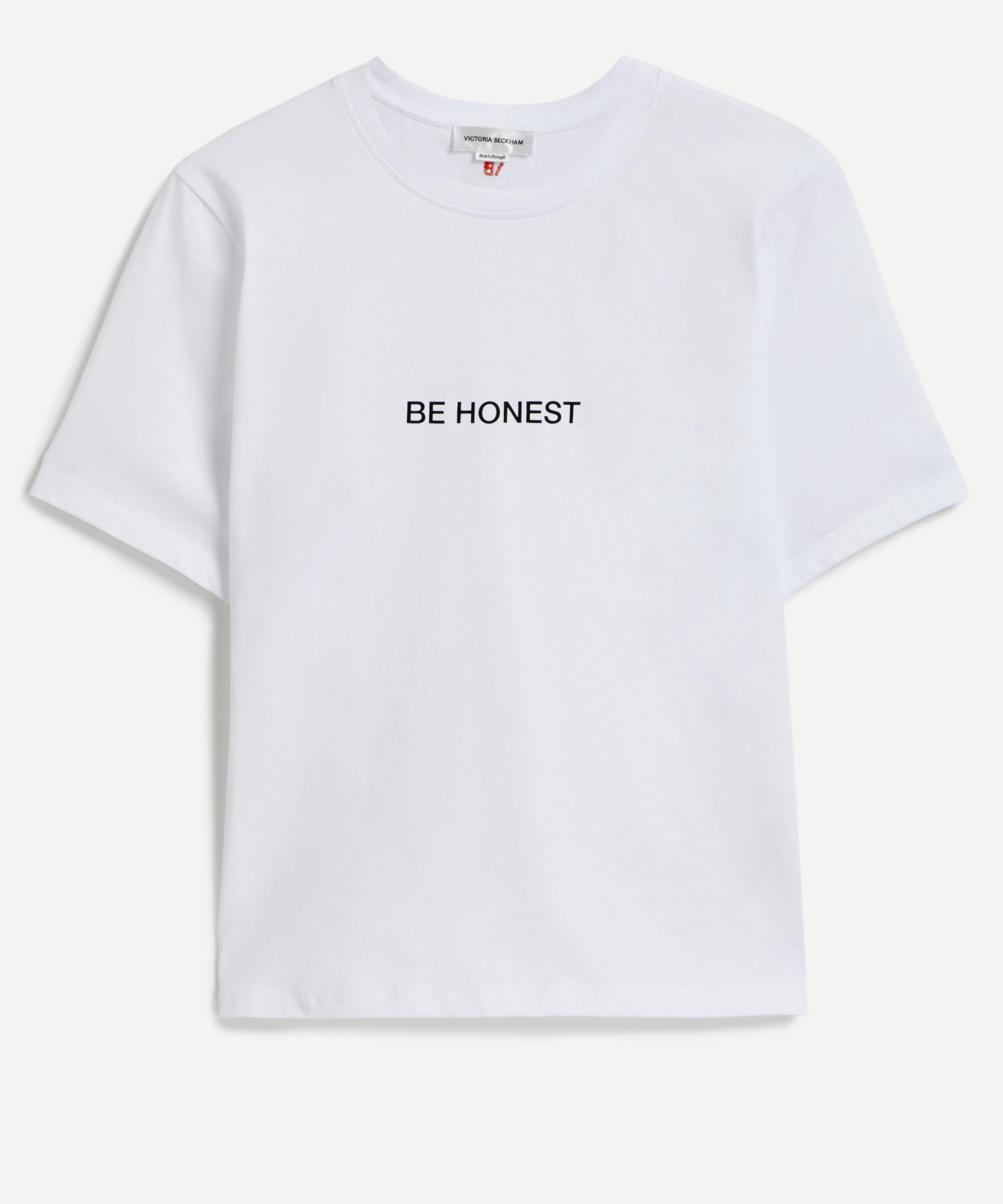 Victoria Beckham might be serious about fashion, but she also has a great sense of humour. Her ‘Be Honest’ t-shirt pokes fun at one of the most iconic moments in recent TV history. Whilst being interviewed for 2023’s ‘Beckham’ documentary, she’s discussing her working class upbringing, when David pokes his head in. “What car did your dad drive you to school in?” He asks. “Be honest.” Victoria looks sheepish, before admitting that back in the 80s, her dad drove a Rolls Royce.