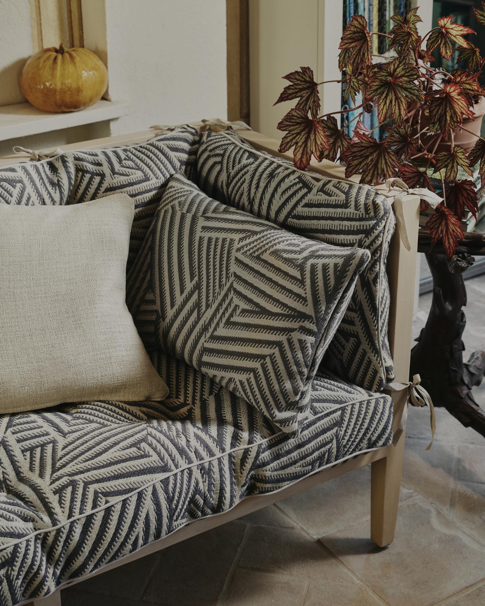 Why not tie together your blues and greys with a statement wall covering? Our beautifully elaborate Hana design, part of our new Botanical Atlas wallpaper collection, has been reinvented straight out of the Liberty archive, layered in mellow neutral hues that can be seamlessly paired with muted furnishing fabrics in Flax Flower and Pewter. If you’re nervous to go all out with pattern, only use a wallpaper in a small section of your living to zone an area - like a home office set-up or perhaps a a reading nook.