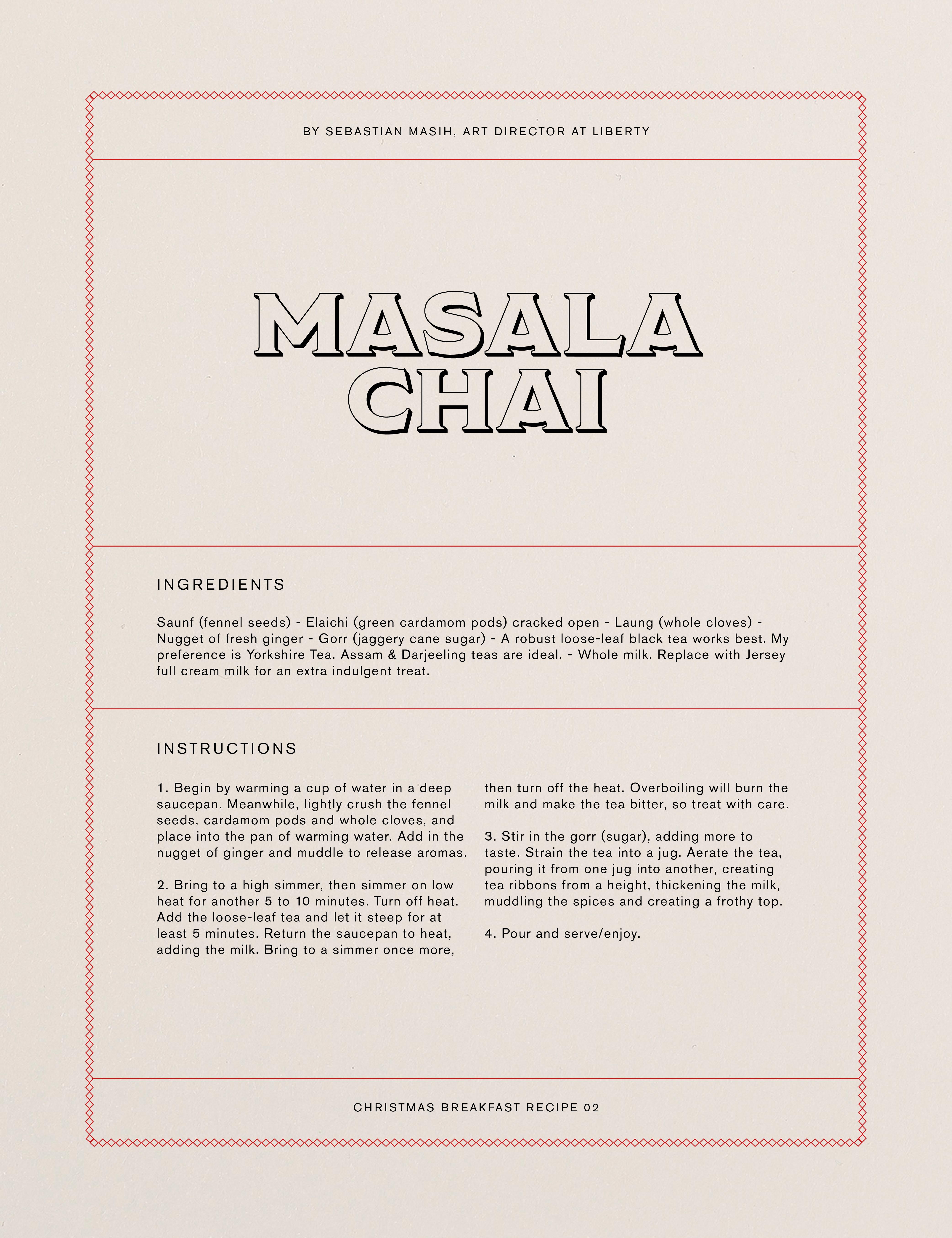 "I am in charge of arguably the highlight of the Christmas lunch plate – the humble, but if properly done, the hands-down crowd-pleaser of the table – the roasted spud. But to prepare myself mentally and get ready for the day ahead, there is nothing better than a cup of mum’s chai – the warmest hug on a cold winter’s morning. This is how we make mummy Venus’ Masala Chai."