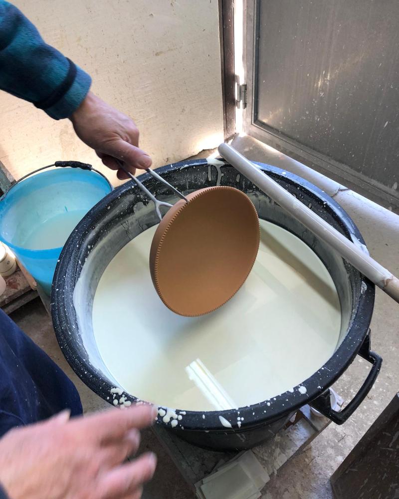 “Our clay is sourced from Montelupo and Sansepolcro, Italy. Our background glaze colour and most of our splatter colours are handmade and mixed in house at our pottery in Locorotondo. Some of the splatter colours are sourced from Florence, from a company producing glazes since 1921, which our pottery has a long-standing relationship with.”