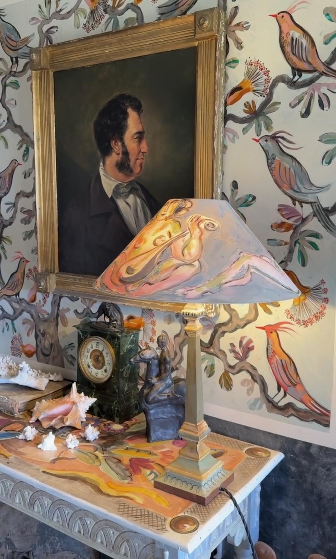 Jane McCall and Jane Howard originally met when their daughters attended the same school, and despite careers drawing them to different parts of the country, their friendship endured. “We were both the mothers that forgot about National Book Day, so we both have that slightly chaotic, last-minute attitude,” Jane Howard says. After her move back to East Sussex, Jane McCall hosted a lampshade painting course organised by a mutual friend. Jane Howard took part and, when considering her own creation, had a light bulb moment: people would want to buy these. They set up a studio on Jane Howard’s farm (above a shed of cows), and Bloomsbury Revisited was born. In the years since, the two Janes have garnered an engaged following comprising lovers of art, creative freedom and all things whimsical.