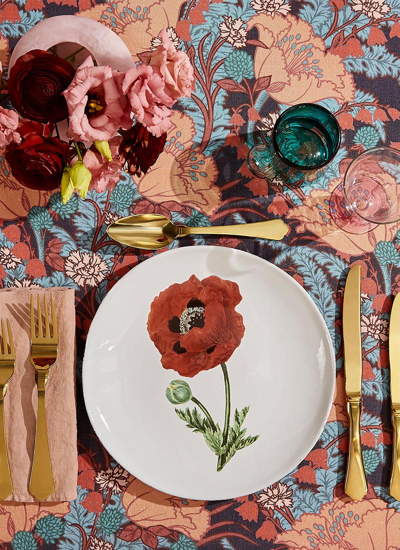 Shop TablewareFor me, print-play with florals is the only way to go. Matched with this iconic poppy plate from Astier de Villatte is a Liberty tablecloth in June. Perfectly pink for romancing in the sunset sky of the evening.