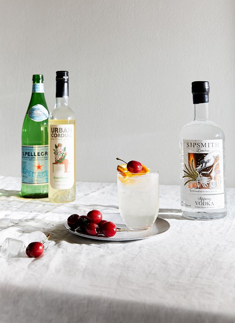 1. Combine vodka and elderflower in a tall glass with ice