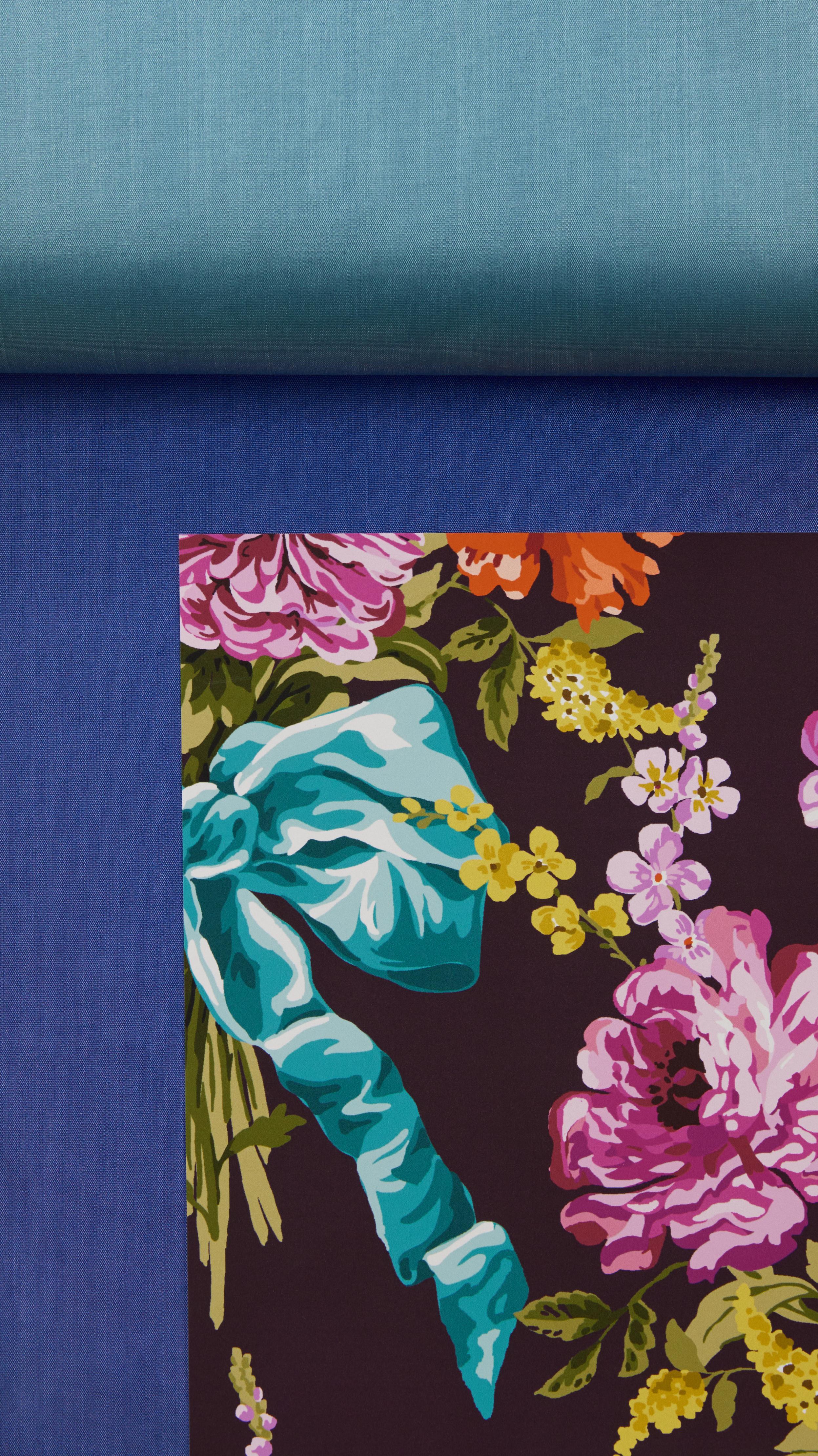 I was initially drawn to the colours of the Bow Bouquet print in Belgravia silk and loved the bow detailing in it. My favourite thing about the design is that we placed the pattern in a way that makes the bows look like embroidery which I adore.