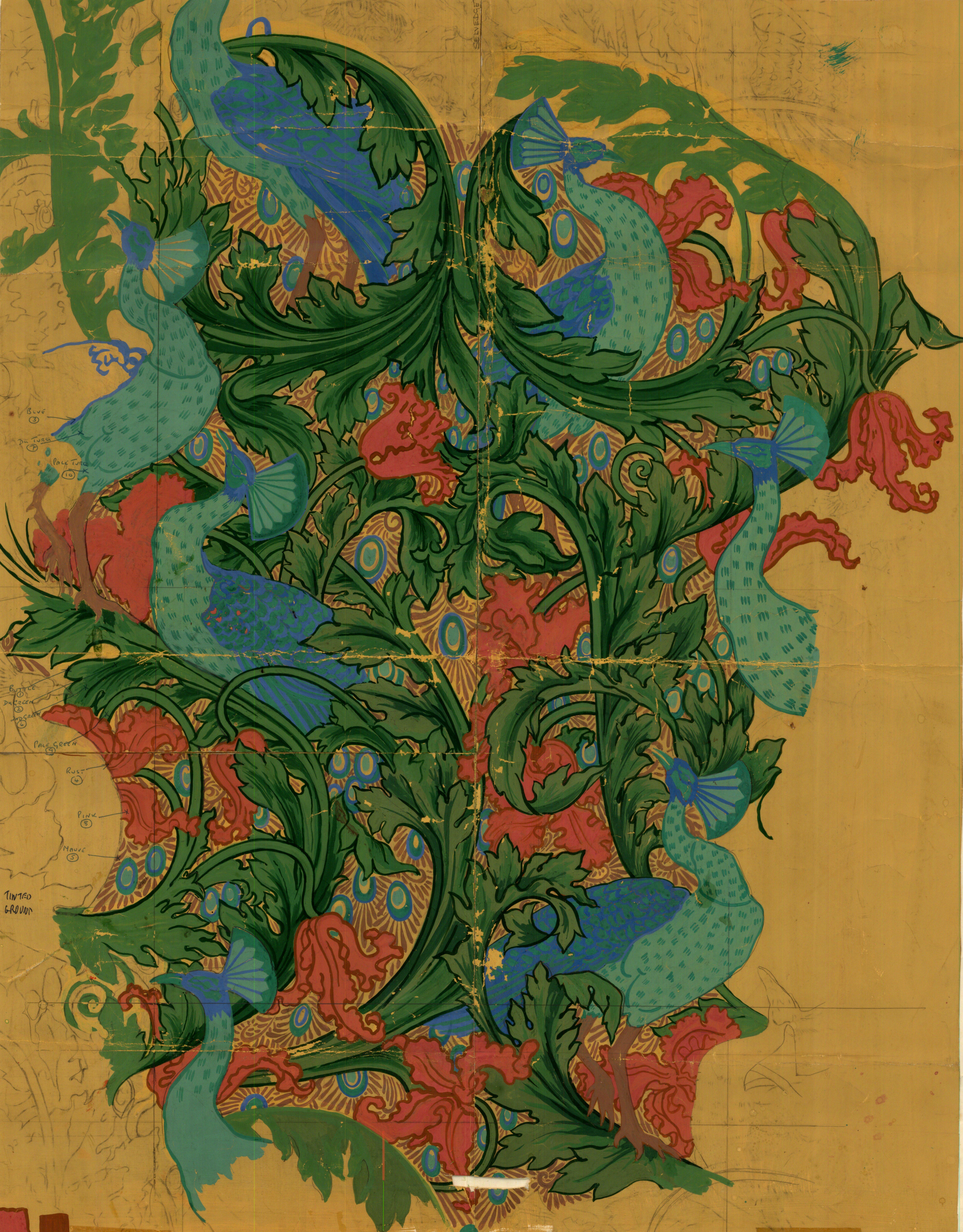 Zephirine is inspired by the Eden’s Awakening print, which was adapted from the famous ‘Peacock Garden’ wallpaper design. Peacock Garden was created in 1889 Arts and Crafts wallpaper design created by Walter Crane, an English designer, painter and illustrator beloved for his illustrations of children’s books. The print was reworked in the 1960s and then again in the 1980s, and features majestic peacocks surrounded by scrolling acanthus leaves and stylised tulips.