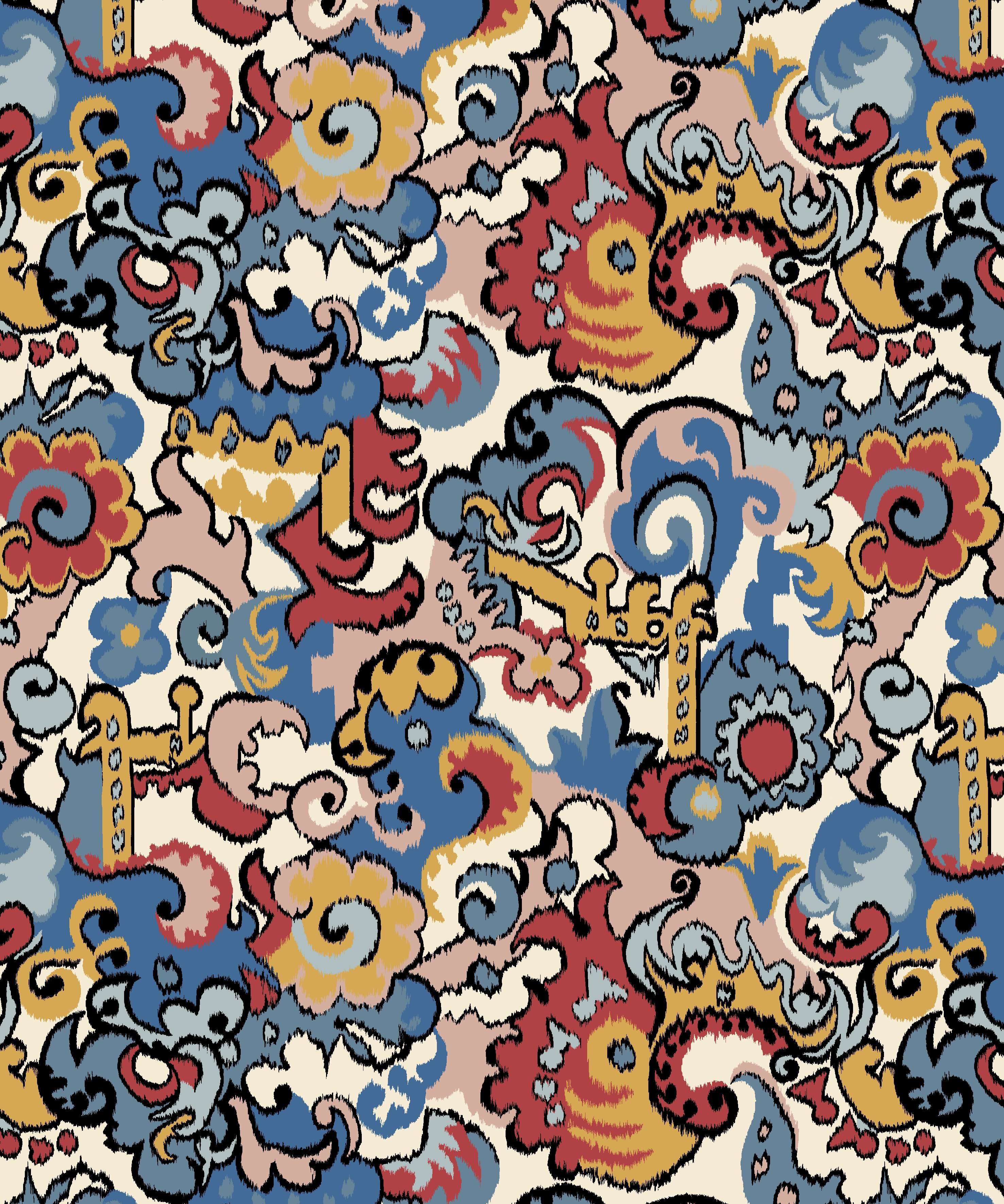 Evoking Liberty’s iconic flagship, the Tudor fragrance is actually inspired by a print called ‘Merchant’. The ornamental design is inspired by Ikat, a dyeing technique from South East Asia and India that Liberty founder Arthuer Lasenby would have encountered on his travels. The Merchant print was redrawn from a large scale Liberty archive artwork from the 1980s. The Ikat style features geometric and decorative shapes, which overlap and merge to create a tapestry effect, evoking the sense of discovery when wandering through the Liberty halls.