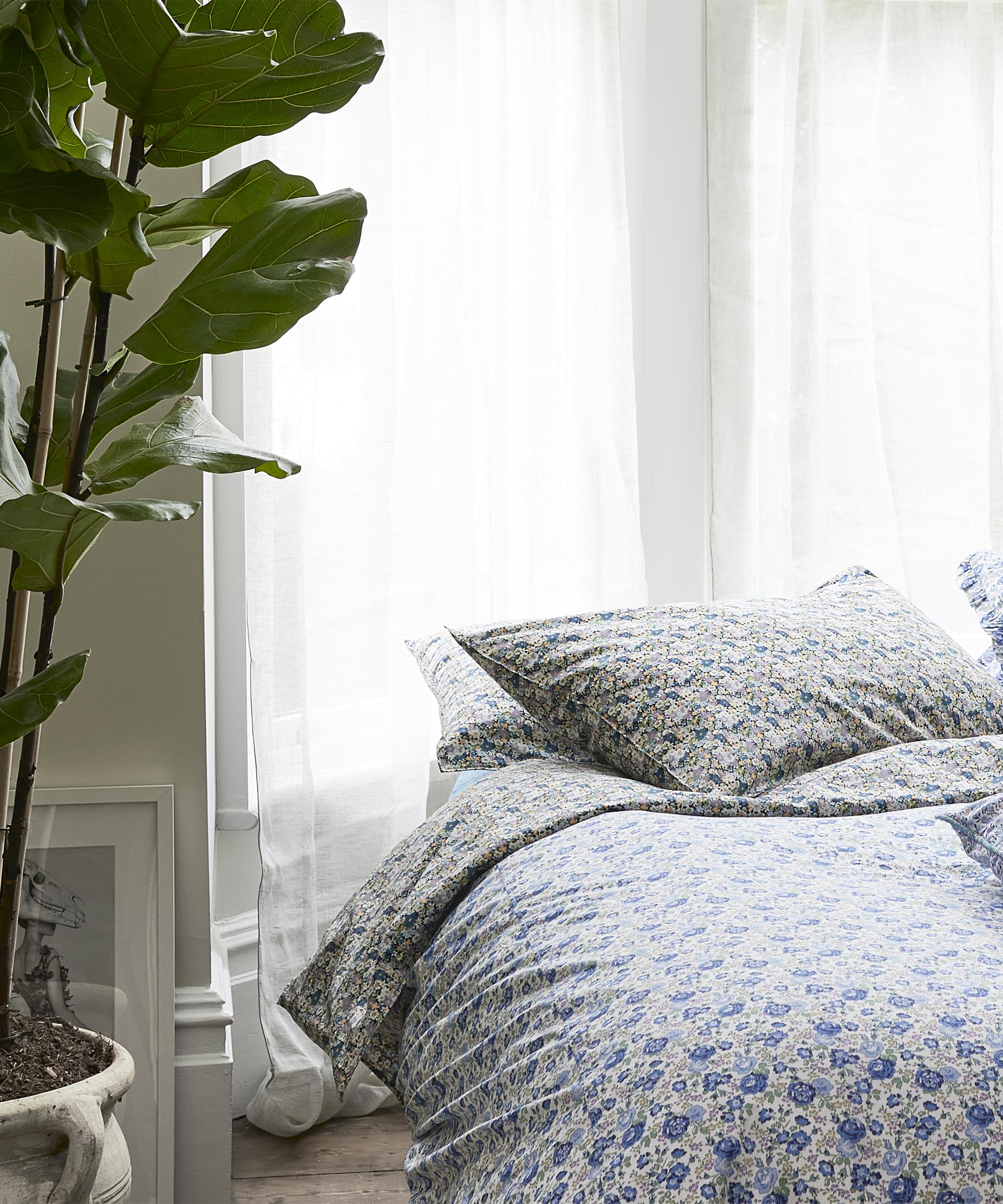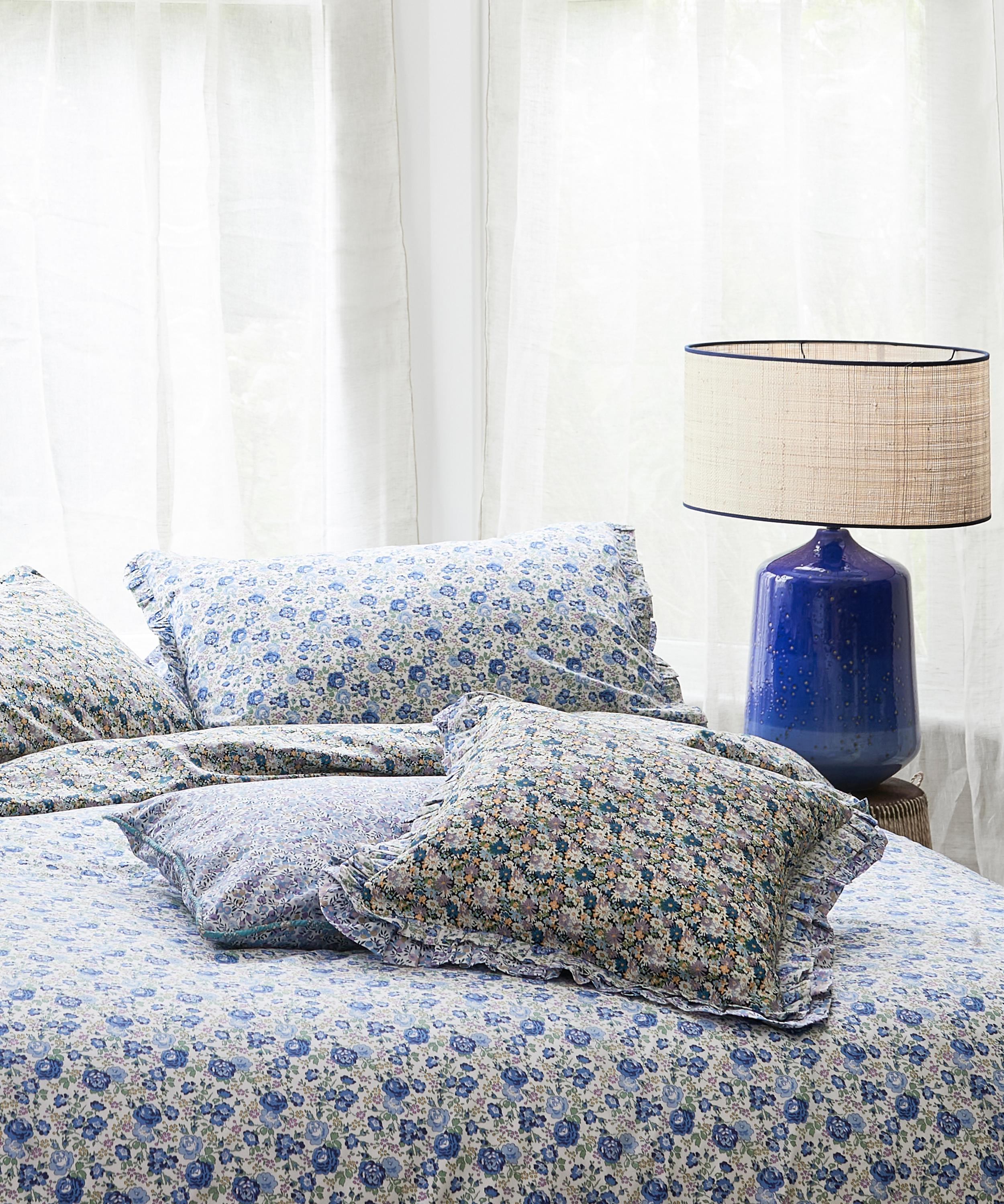 Somerset-born bedding brand Coco & Wolf is renowned for its Liberty print bedspreads, duvets and cushions, crafted from our inimitable Tana Lawn™ cotton, a modern masterpiece of fabric production that Liberty has been perfecting for over 100 years. The Felicite and Wiltshire king duvet set features two standard pillowcases and a king duvet cover, dressed in Liberty Fabrics’ Felicite and Wiltshire print - a rose trail pattern and classic leaf and berry print, originally designed for Liberty Fabrics in 1933. Use the set to infuse a touch of print into an otherwise, subdued sleeping space. We suggest embracing the maximalist trend by coupling the set with print-loaded cushions, linen throws and rattan décor.