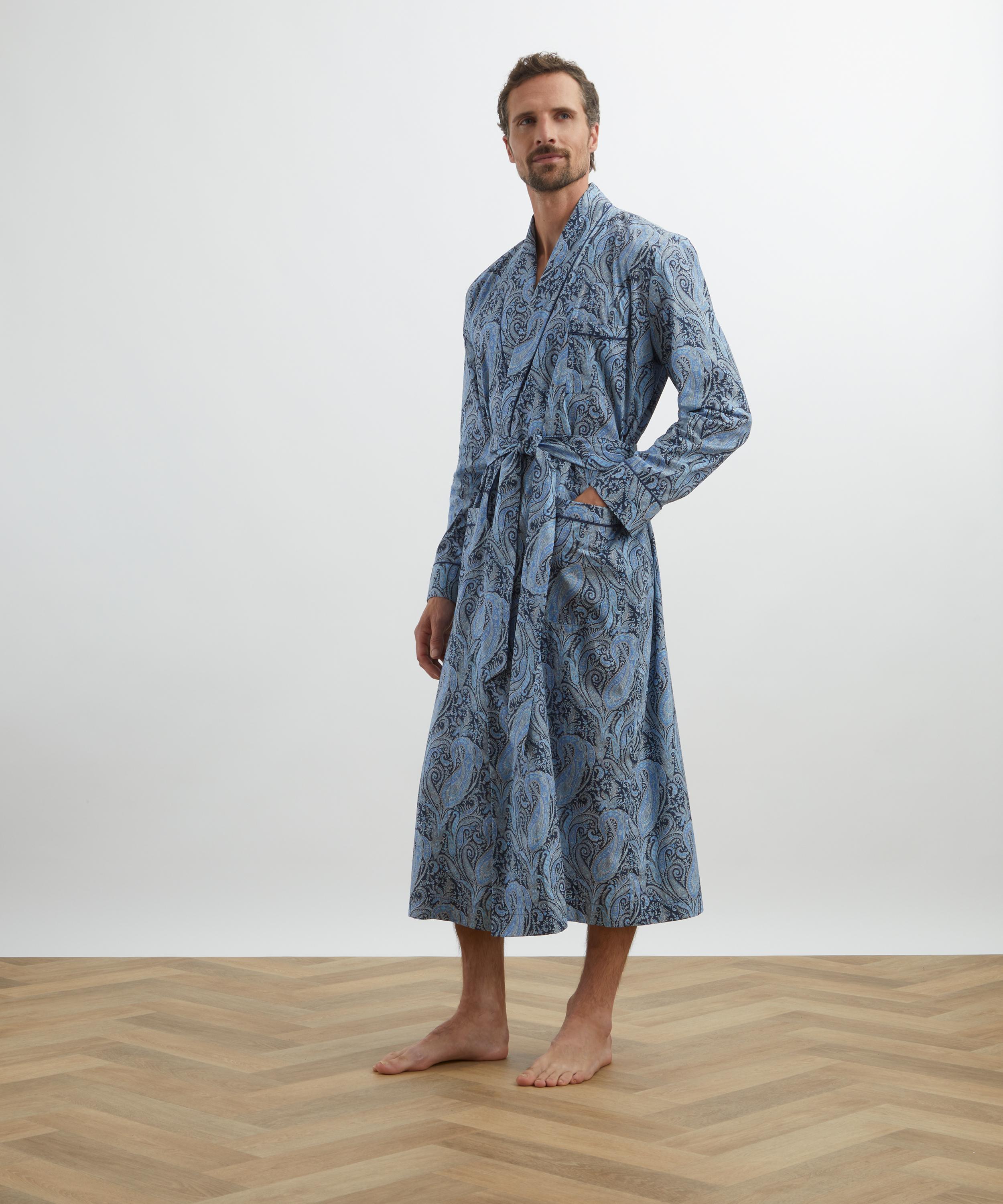 Crafted from our signature Tana Lawn™ cotton - perfected over more than a century - this robe offers a sleek, timeless alternative to the traditional dressing gown. Designed with a shawl collar, self-tie belt, front pockets, and piped trims throughout, it’s the perfect blend of comfort and refinement.
