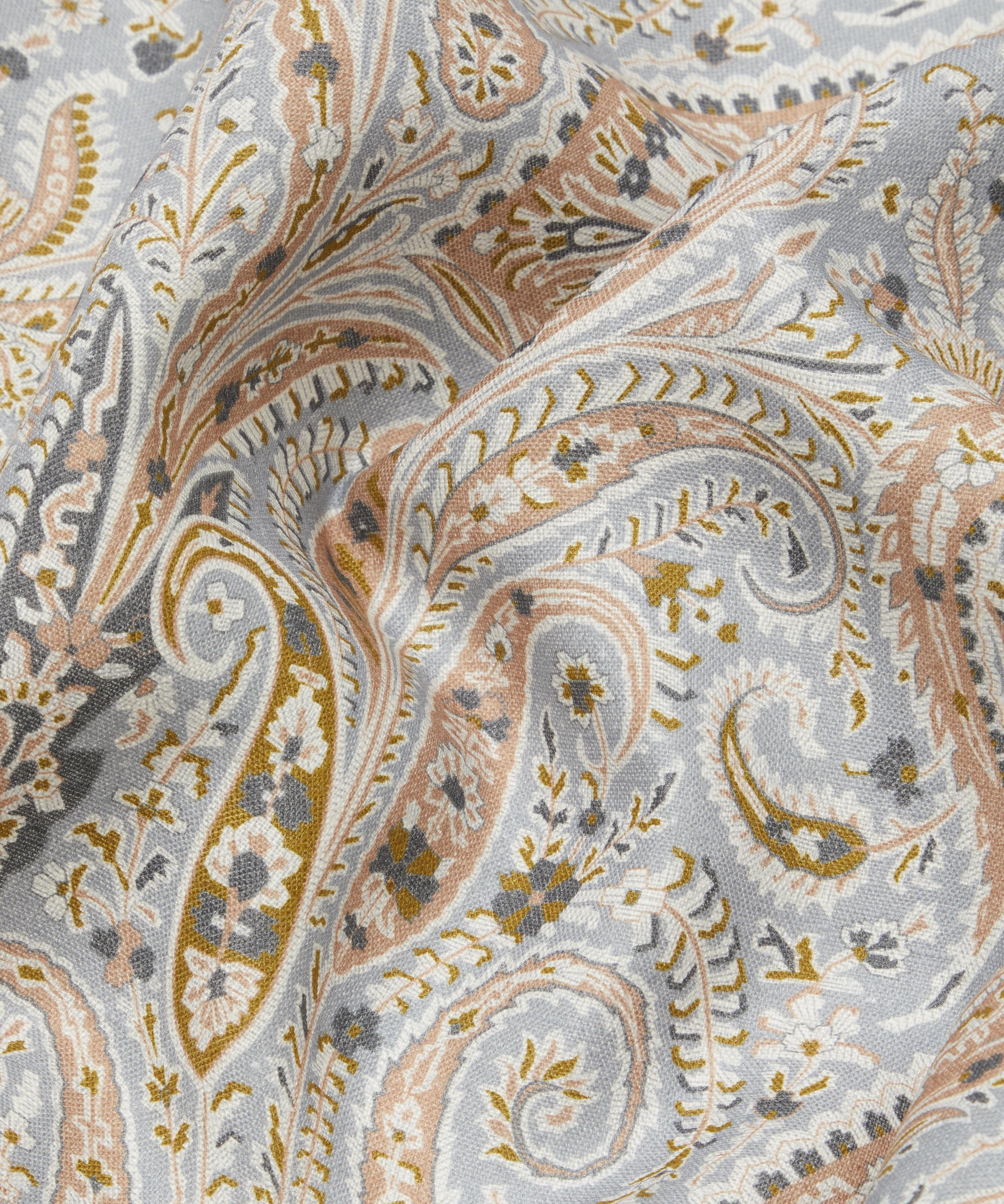 Felix Raison is a large-scale paisley layout, its central elements drawn from an archival paisley shawl dating from the 1850s. It is expertly printed in Italy onto our Chiltern linen – a superlight, crisp base designed to beautifully highlight our fine-scale prints. Made from pure linen, this is a great option for drapery and window dressings for creating maximum light and brightness.