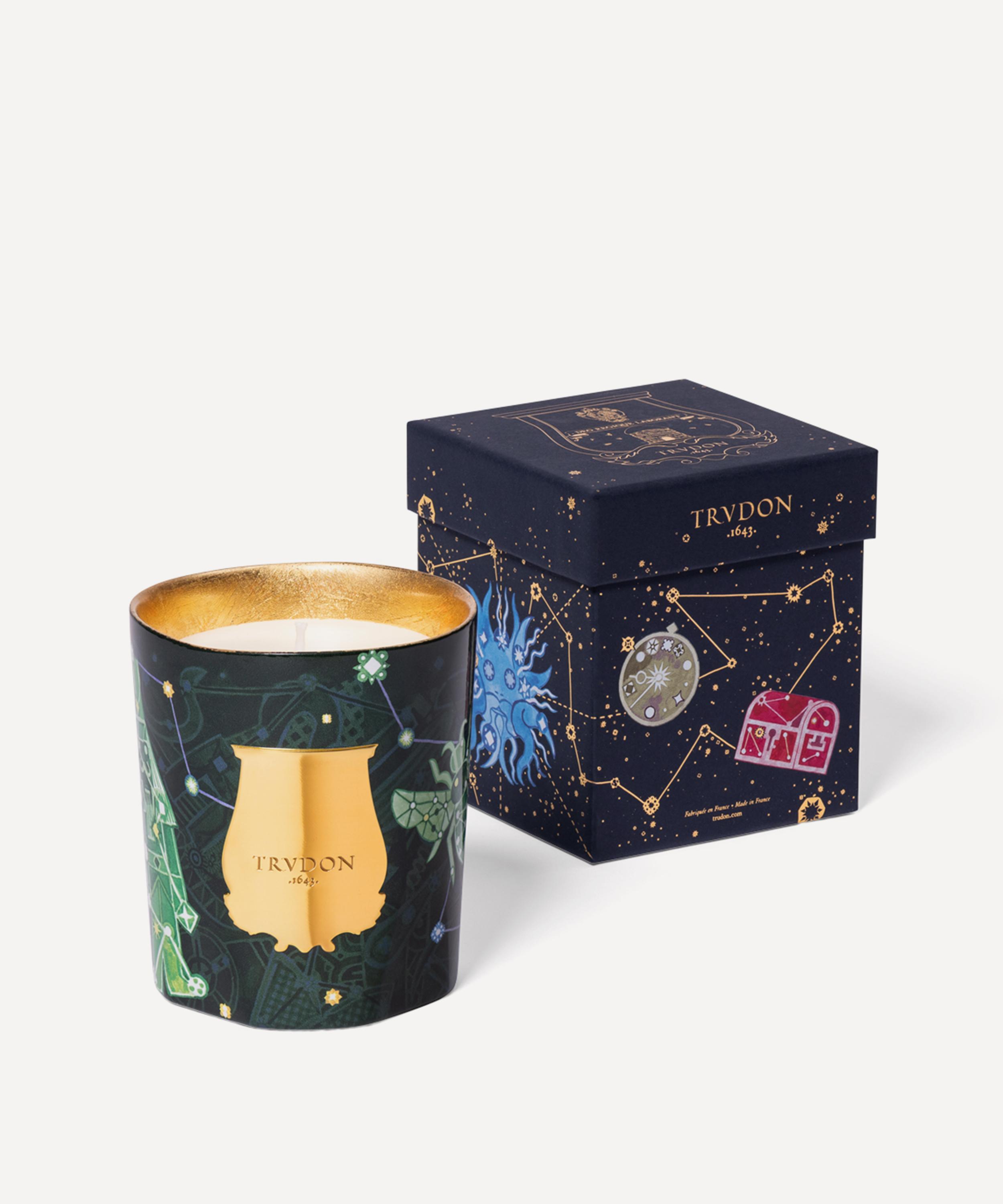 Imbued with the familiar scent of the Christmas tree, this transportive fragrance weaves together notes of fresh Siberian pine and cedar with aromatic myrrh and incense, creating a mesmerising olfactory atmosphere to fill your home with this season. Once lit, this luxury candle sparkles in its special decorative glass; each beautifully detailed with whimsical illustrations of imaginary constellations, elevated by gold leaf accents to ensure a unique and shimmering finish.