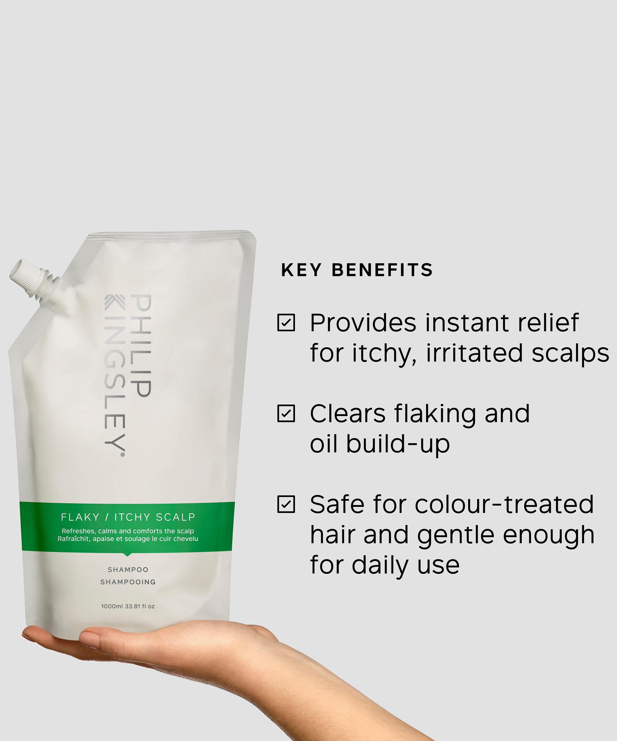 Keep your tresses dandruff-free for longer with this refill pouch of Philip Kingsley's Flaky Itchy Scalp Anti-Dandruff Shampoo, an award-winning daily formula crafted to deeply soothe and nourish irritated scalps.