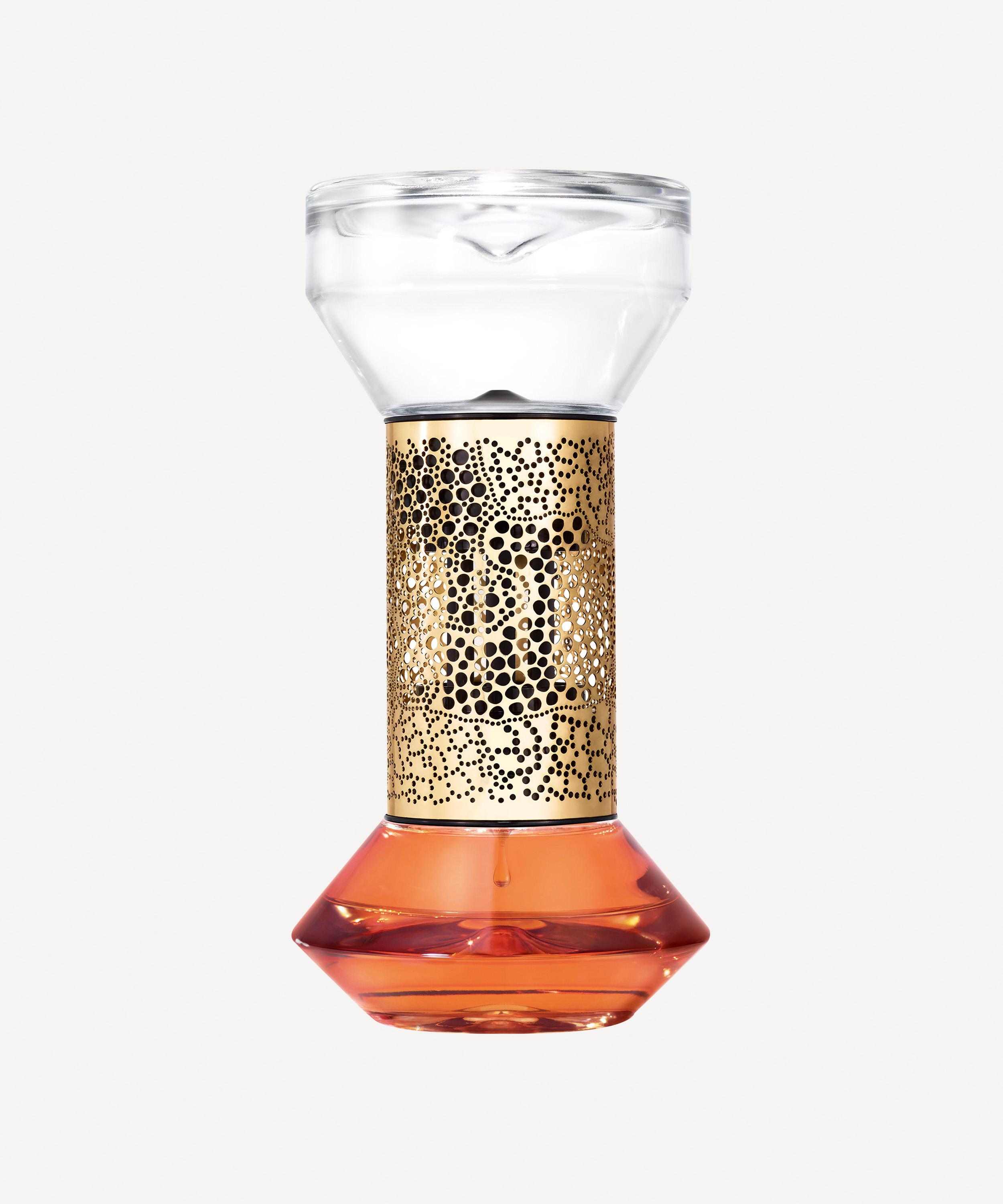 The Diptyque Hourglass Diffuser takes on a beautiful new form, offering not only the same delightful Fleur D'Oranger aroma but a charming, sculptural design detailed with a polished metal cutwork duct.