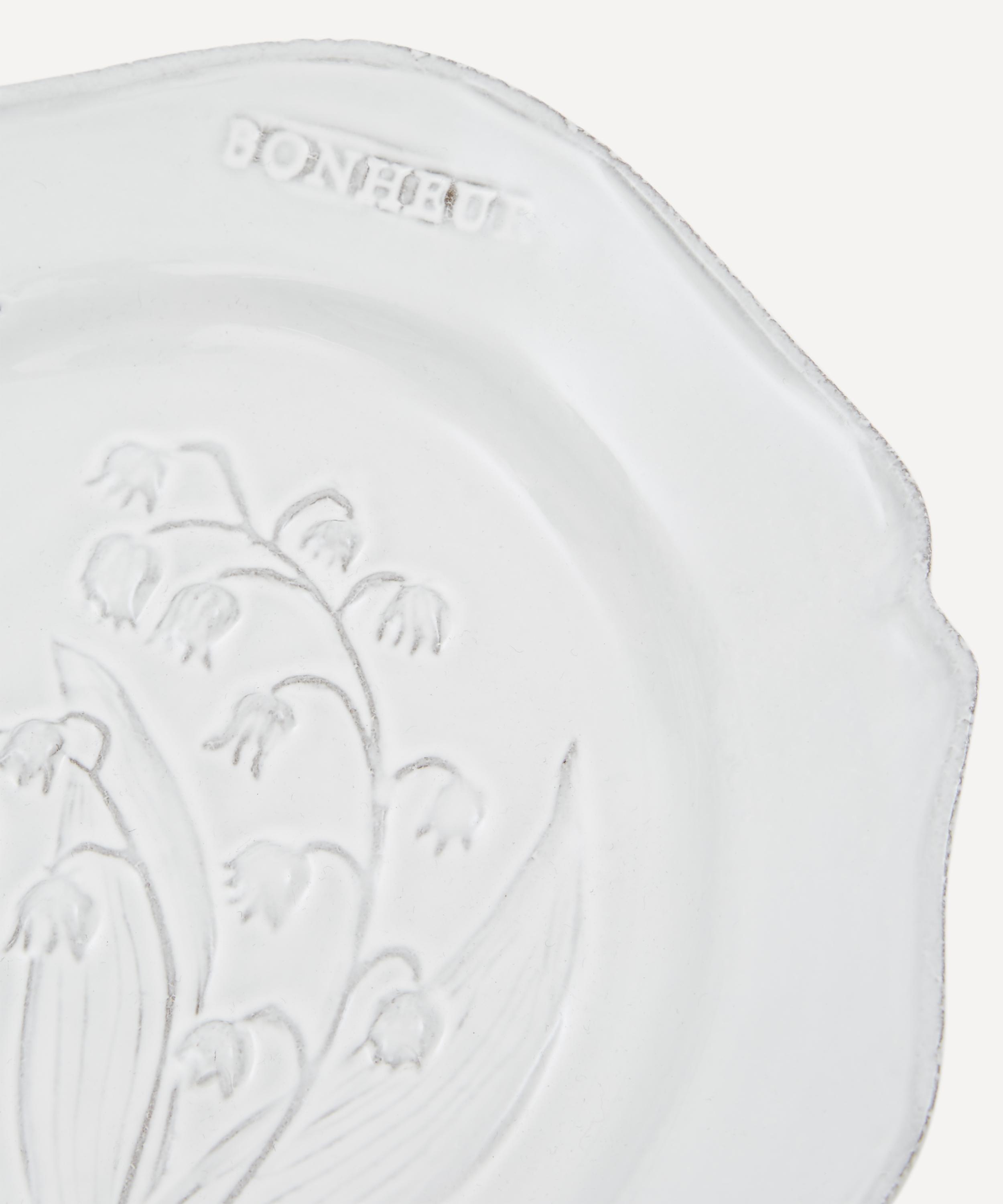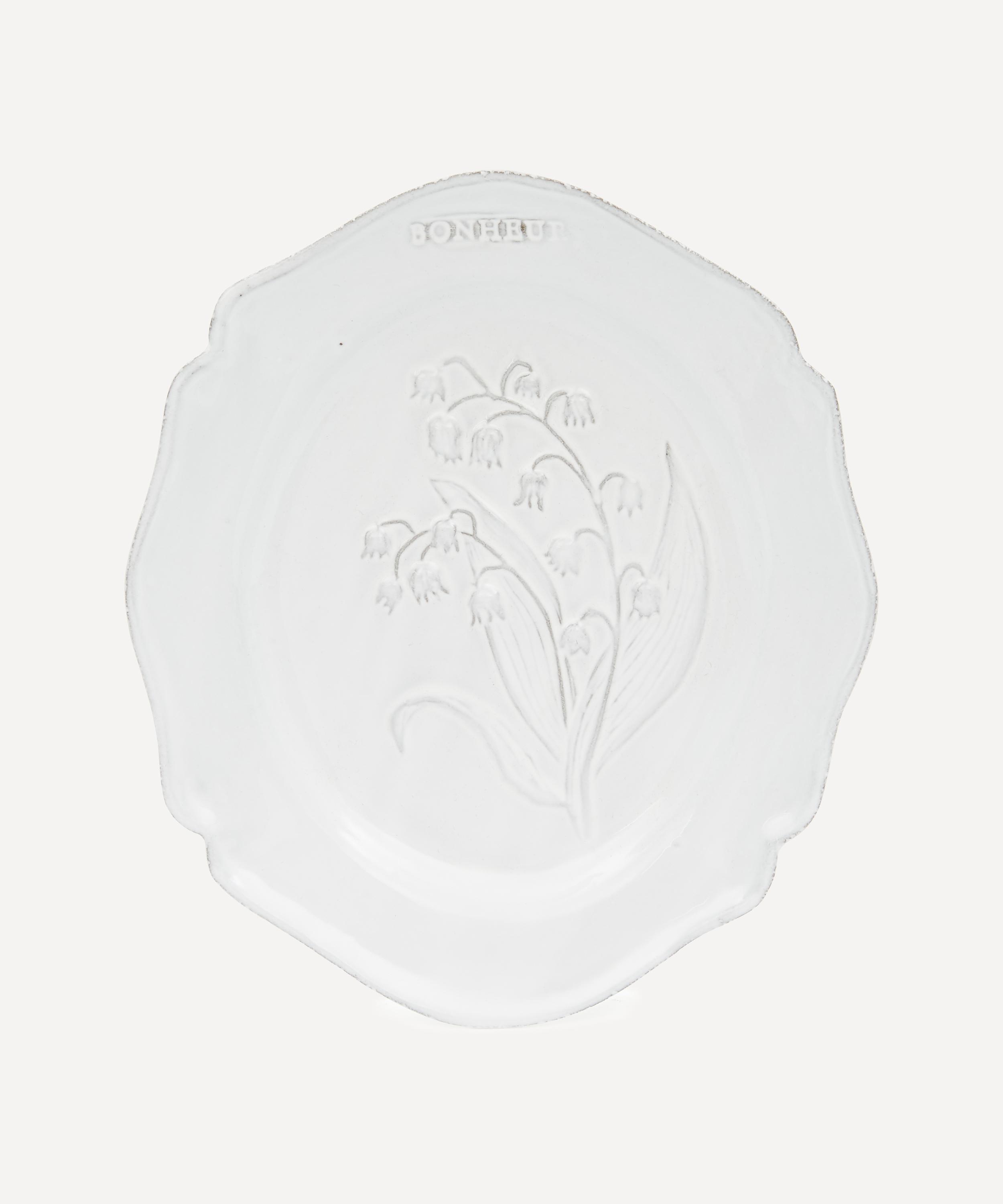 Serve up sweet treats or delicious sides on this Fleurs dessert plate from Astier de Villatte.