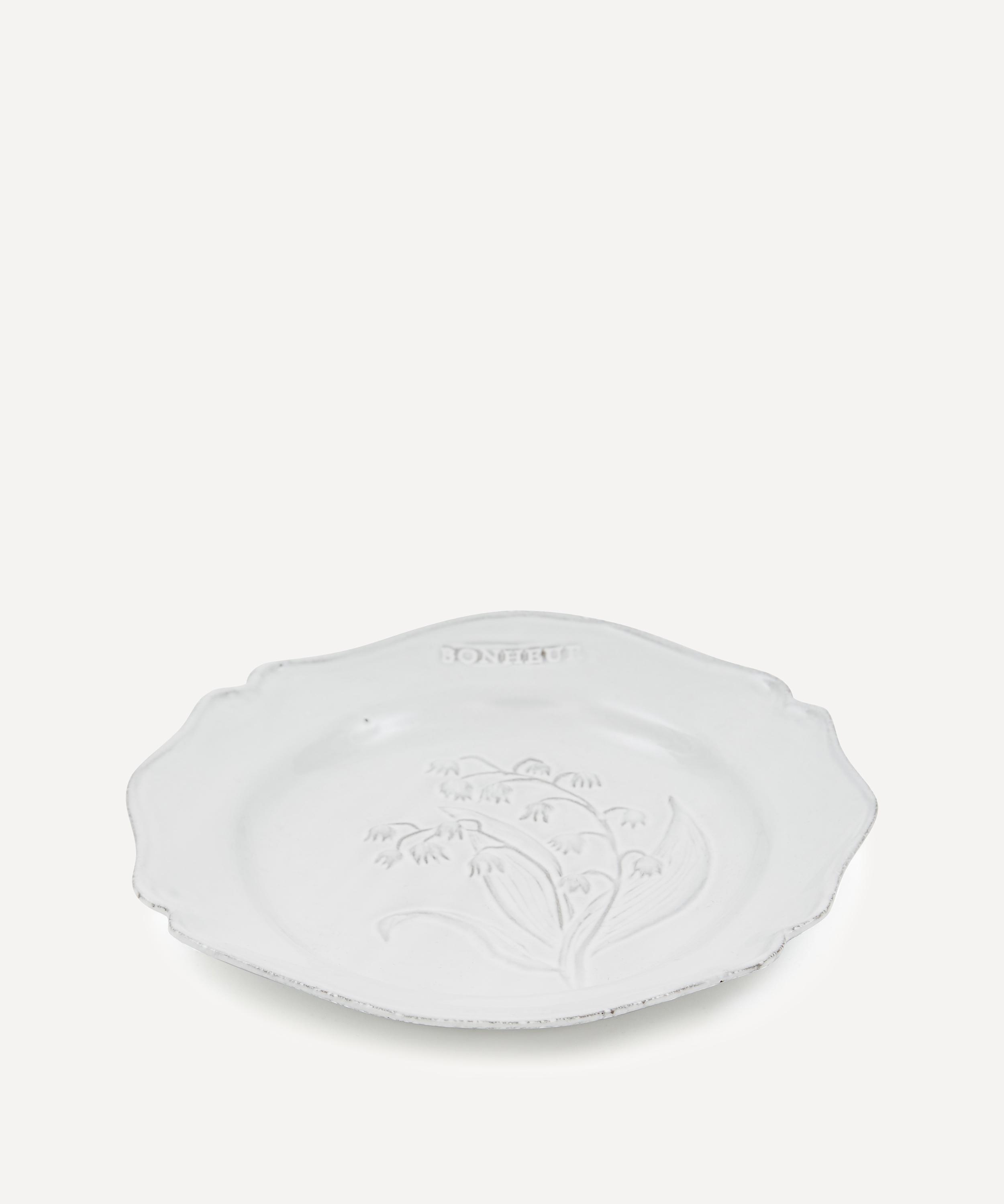Serve up sweet treats or delicious sides on this Fleurs dessert plate from Astier de Villatte.
