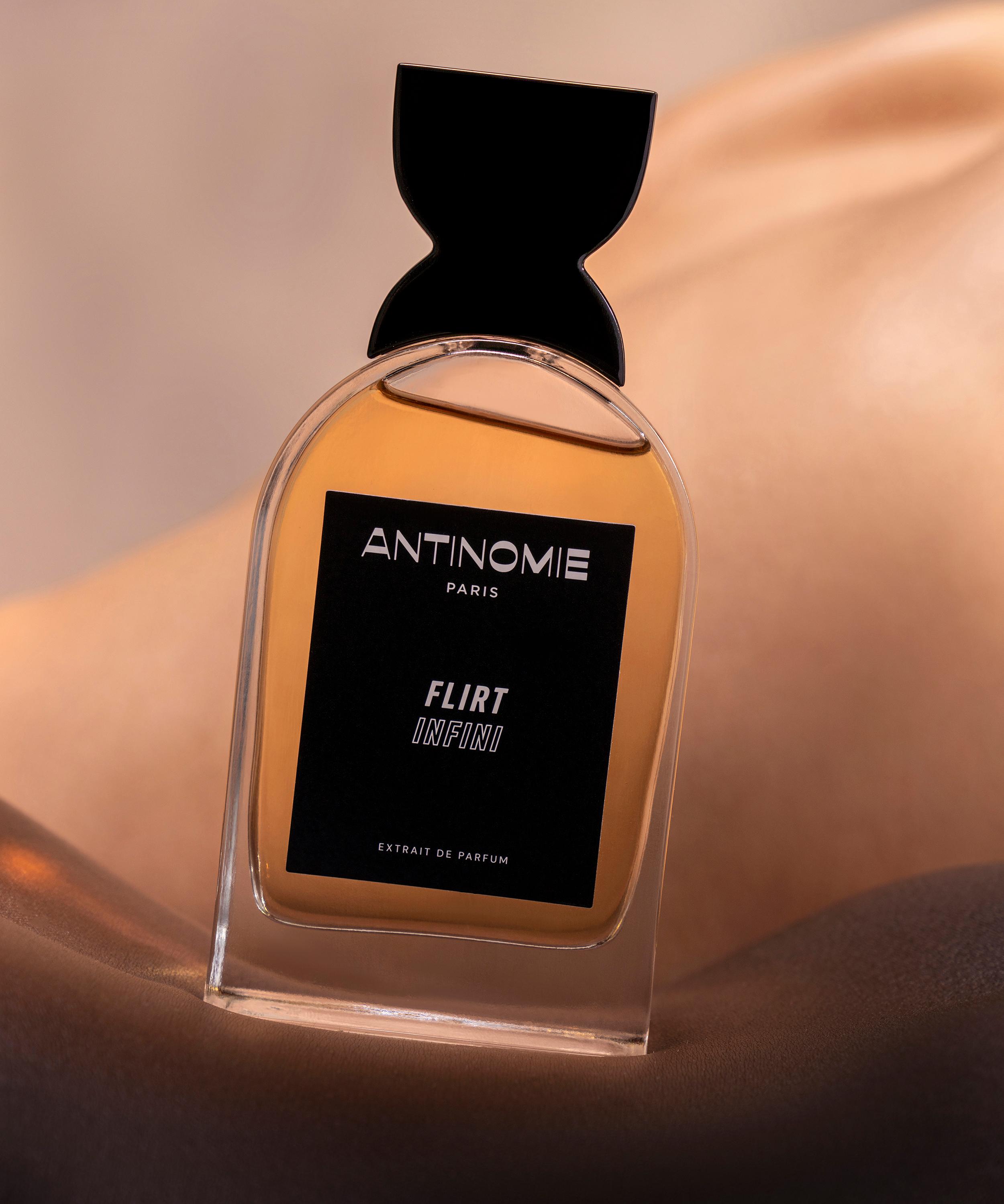 Embrace your romantic side with Flirt Infini extrait de parfum from Antinomie, a fresh and fruity fragrance that bottles the intoxicating sensation of a love story unfolding.