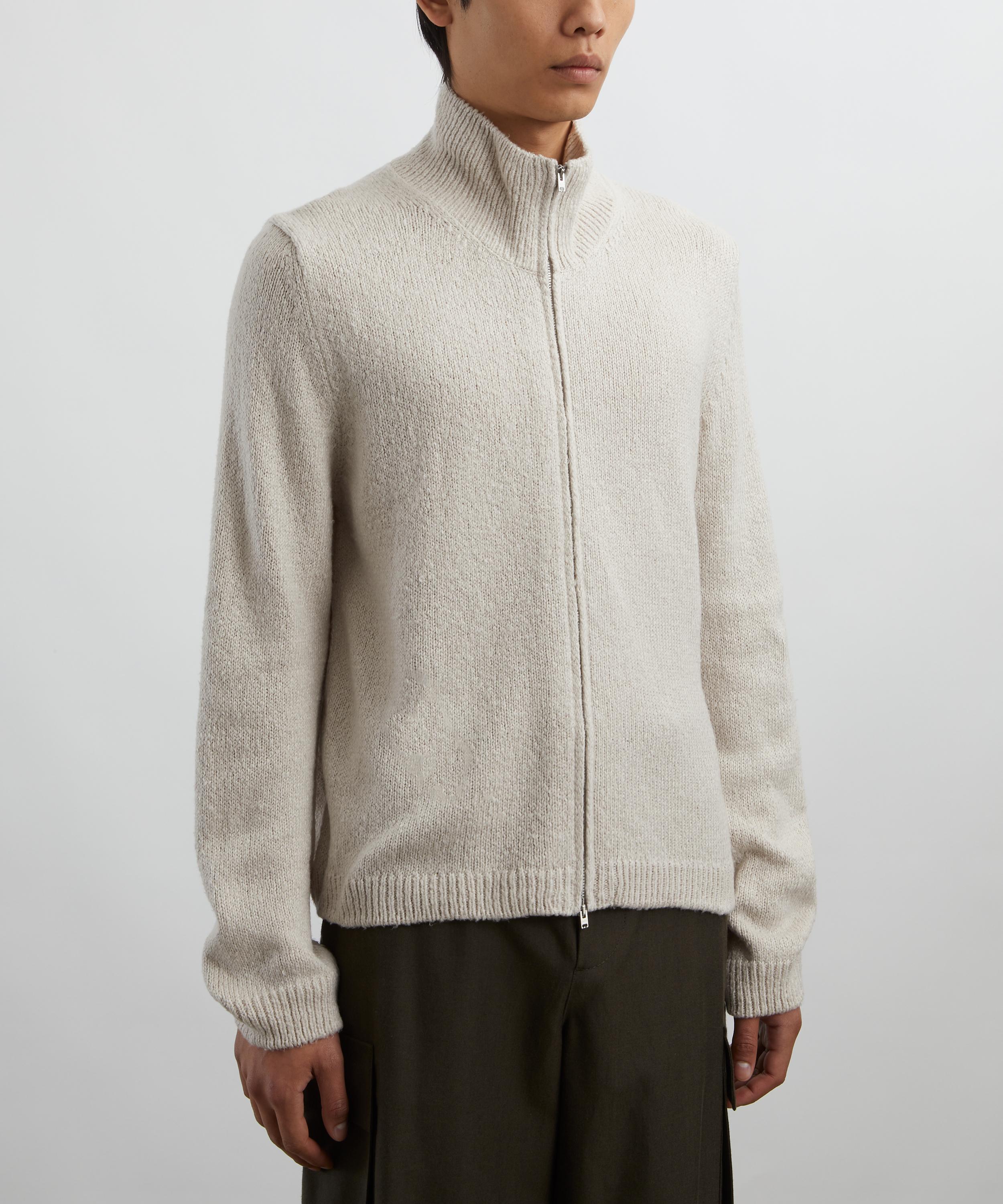 Knitted from Italian silk, this understated piece boasts a relaxed, straight fit, a funnel collar, two-way zip closure through the front and is complete with ribbed trim detailing on its cuffs and hem for a cosy finish.